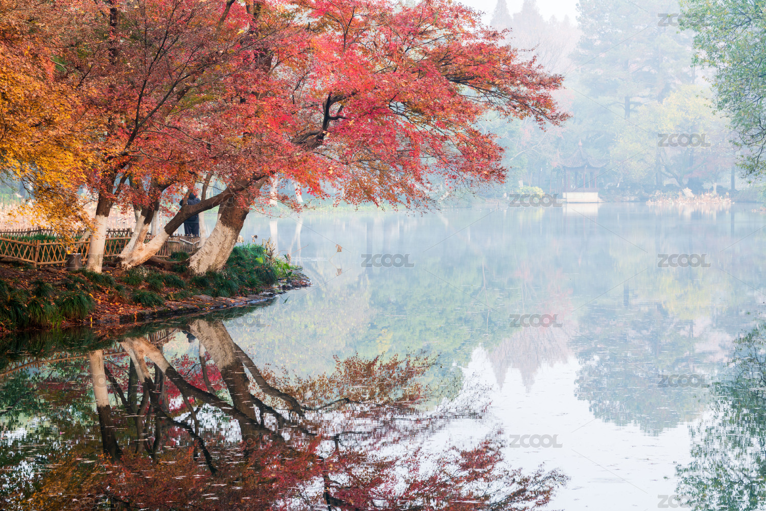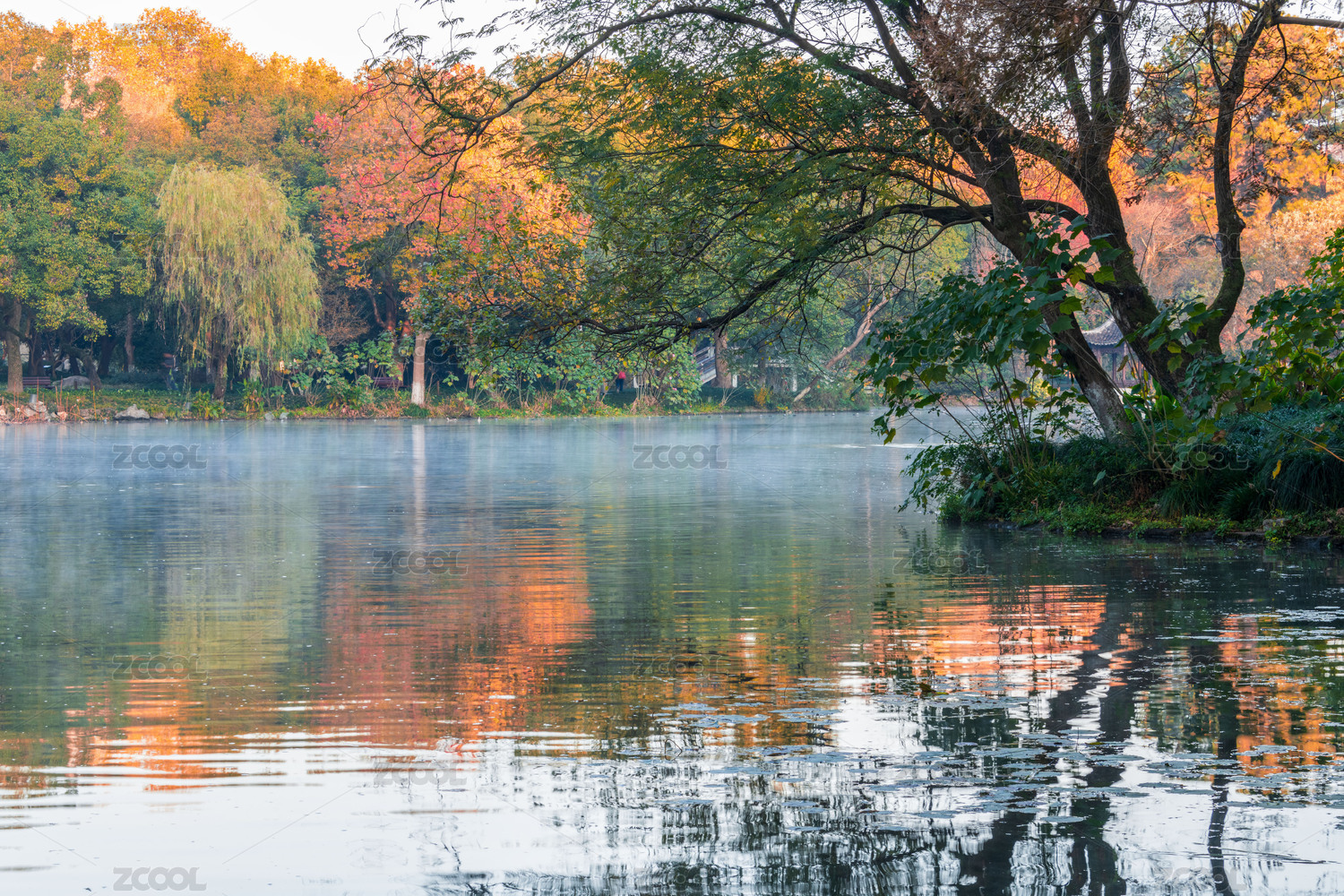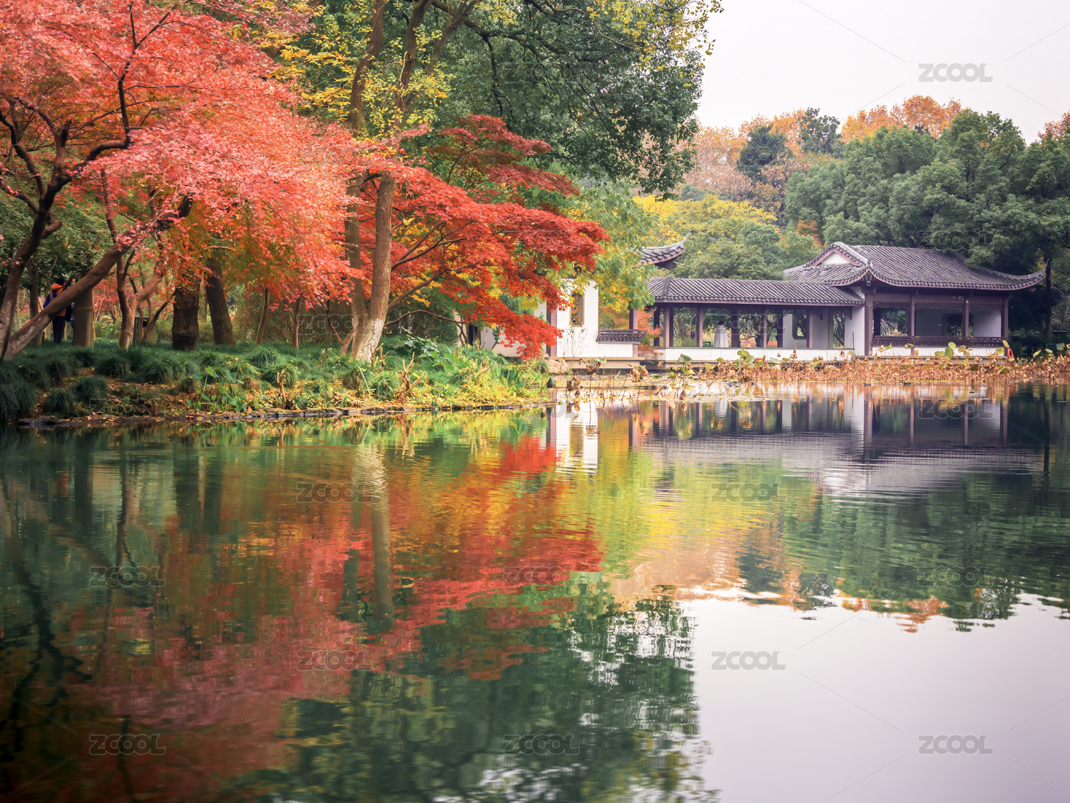 杭州西湖,曲院风荷,秋季,秋天,枫叶,风光,风景