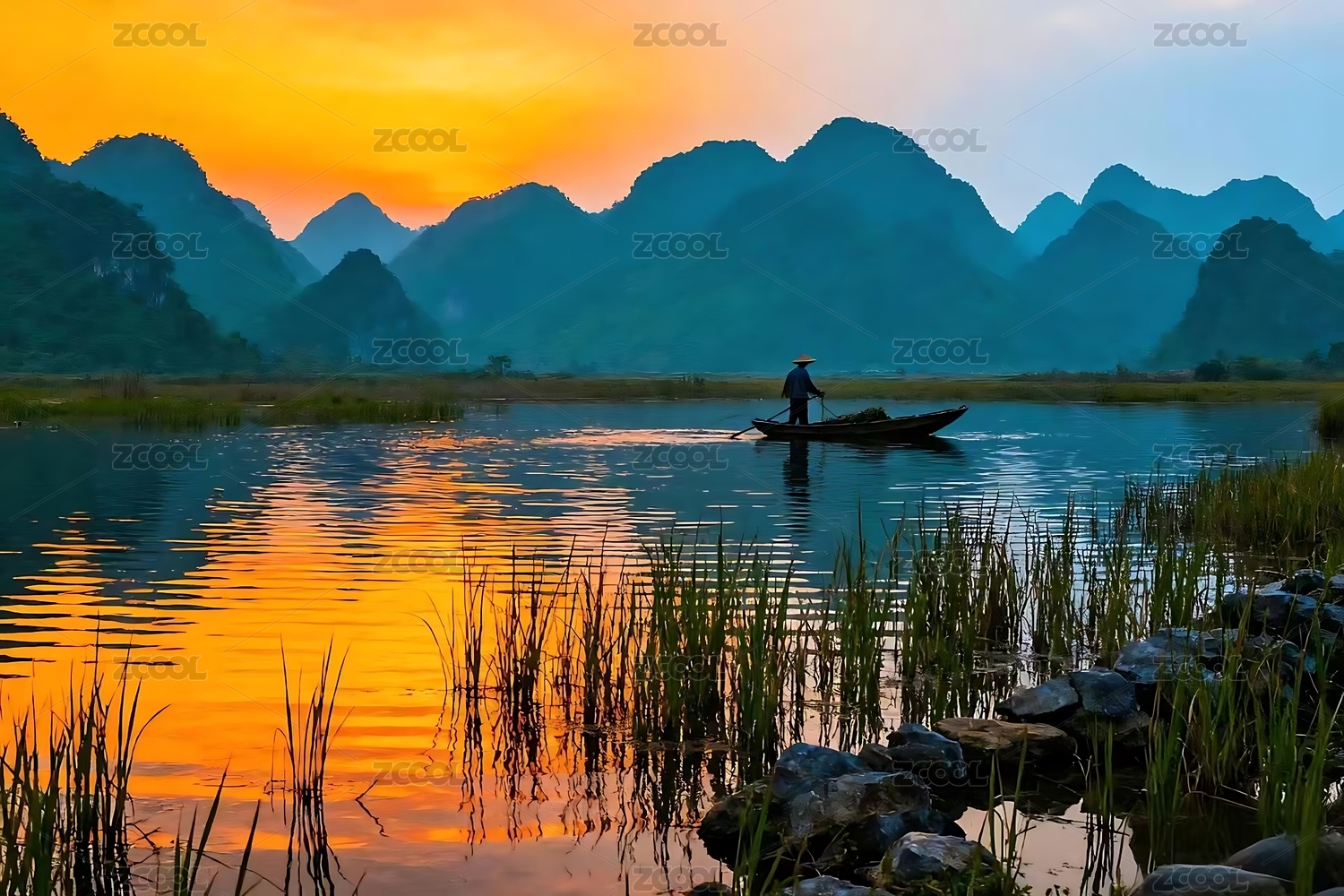 黄昏下的渔舟