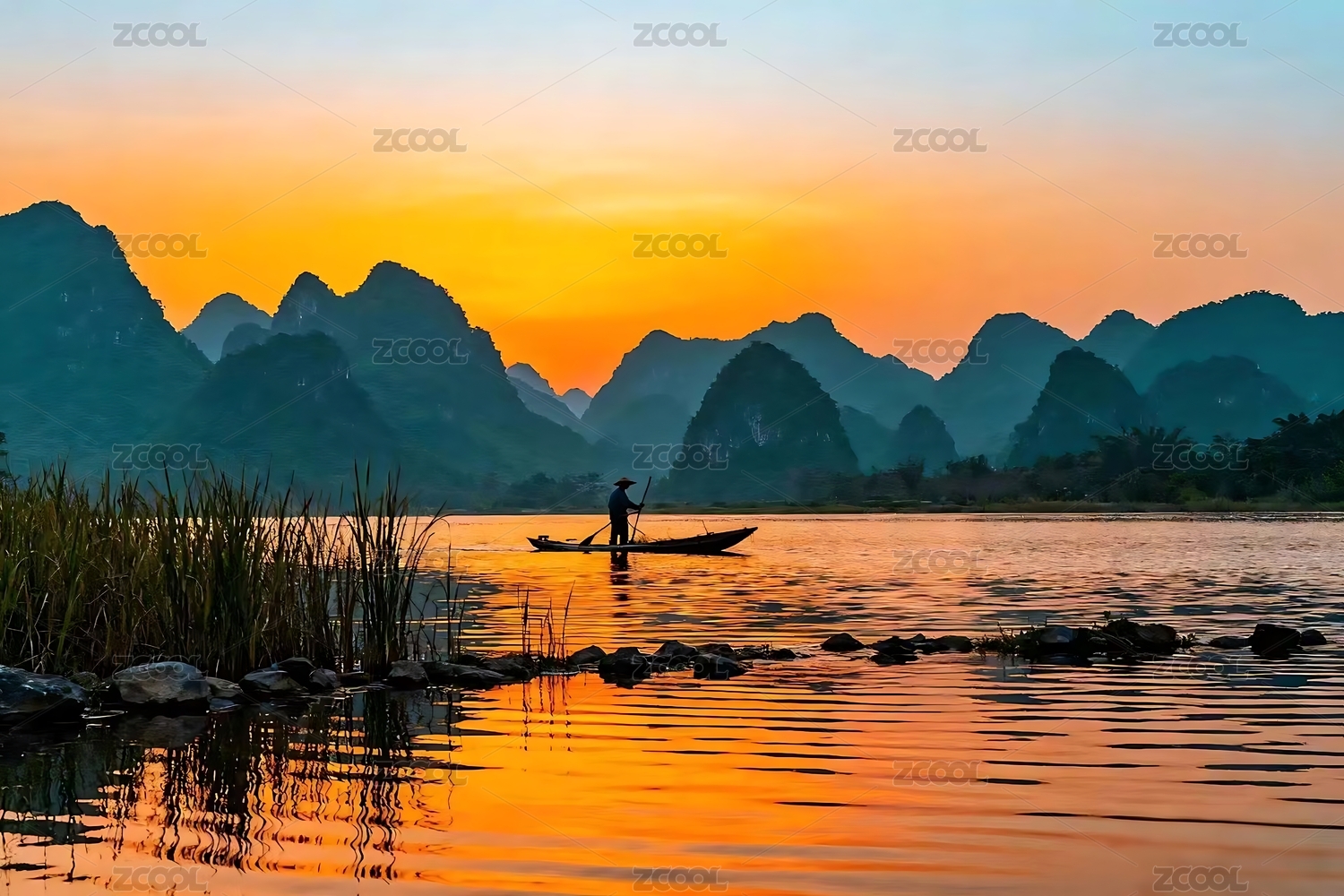 清晨漓江山水画卷