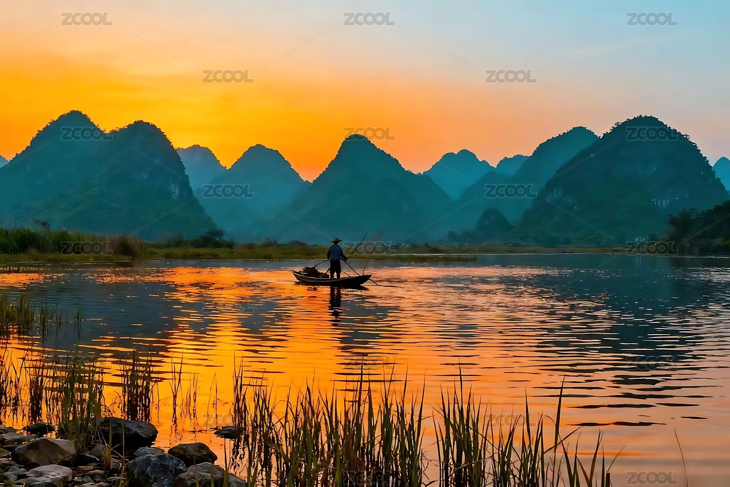 山水日出日落时的