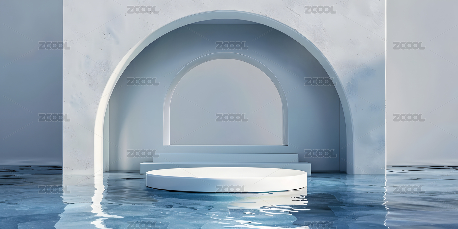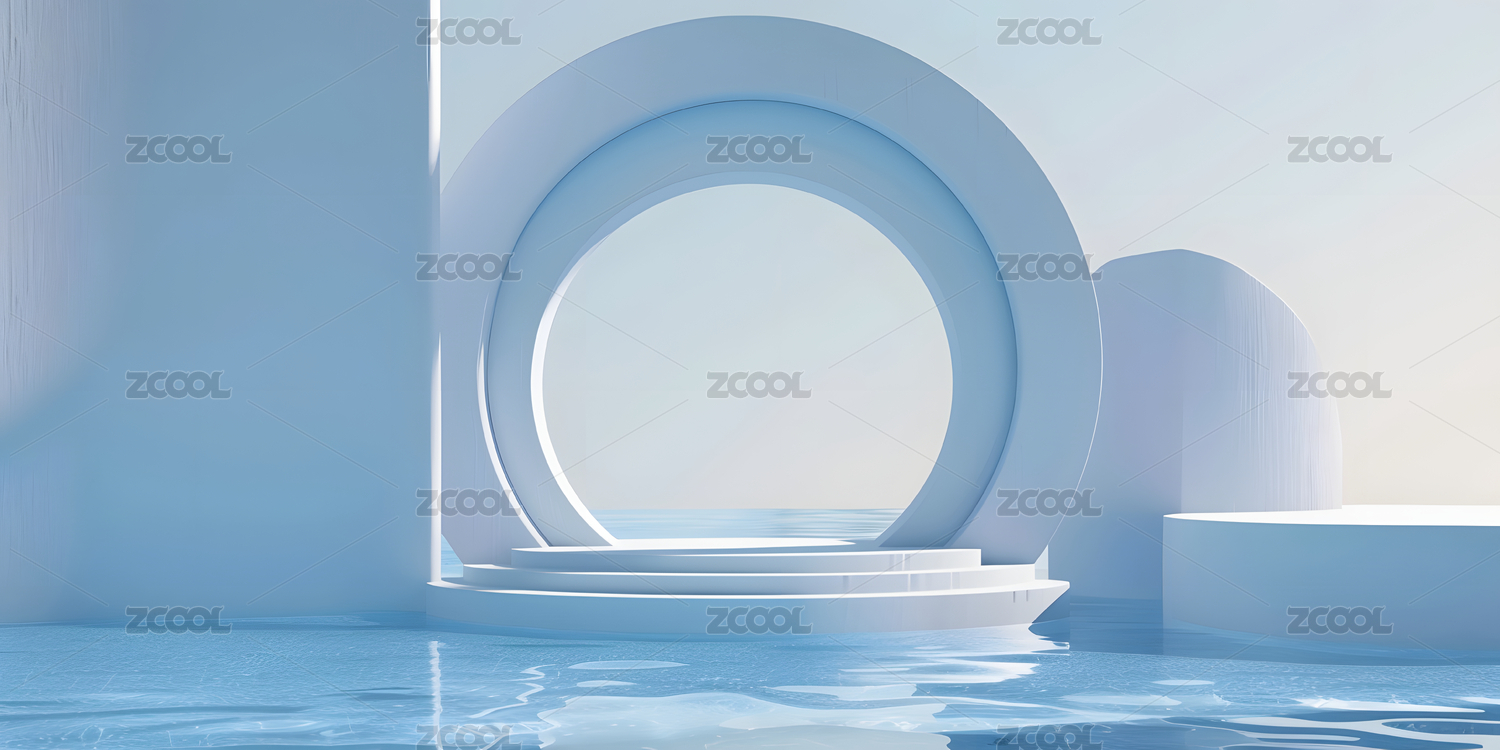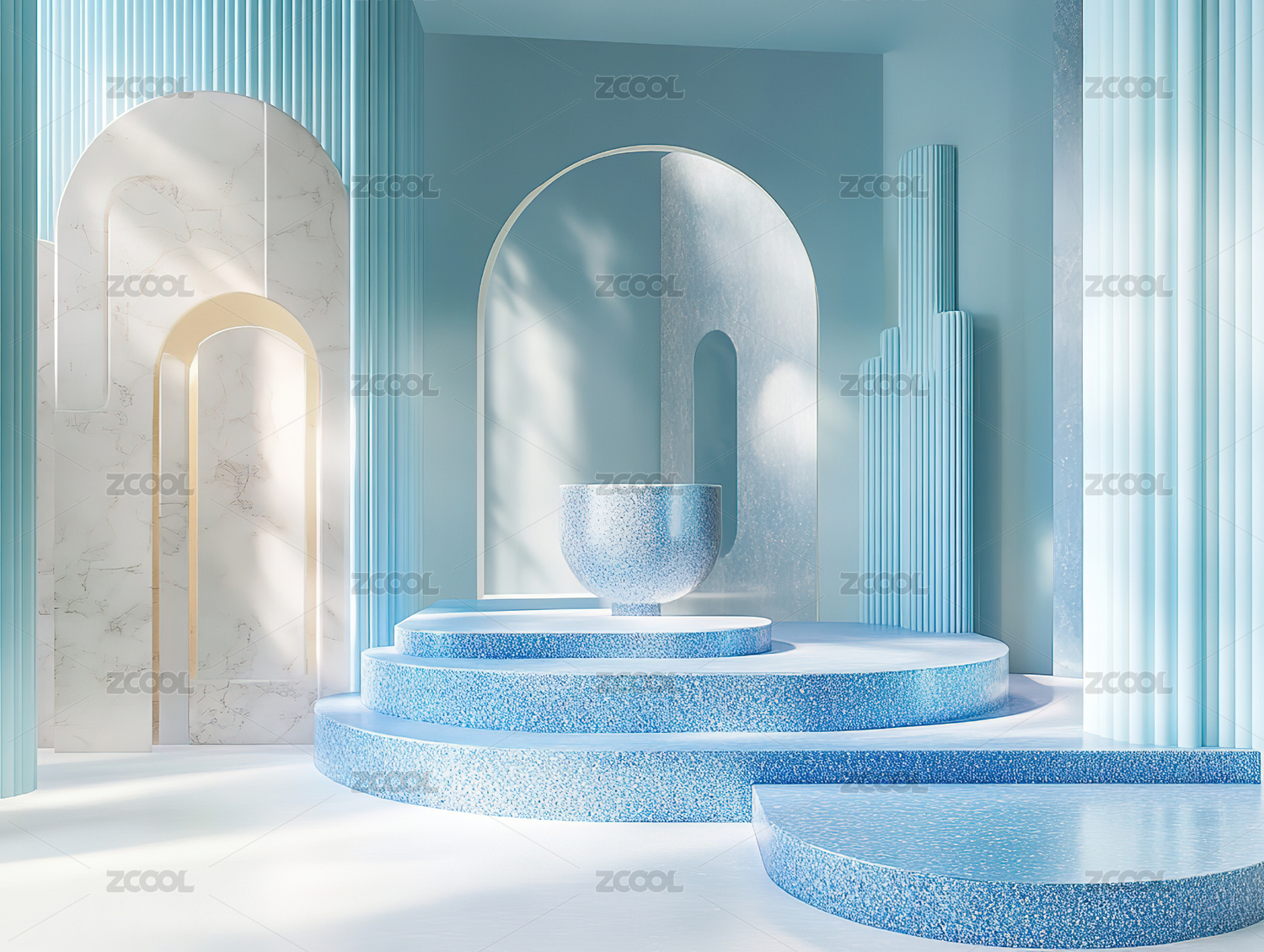 3D,插画,背景,光影,几何,几何体,几何建筑,基座,大理石,室内