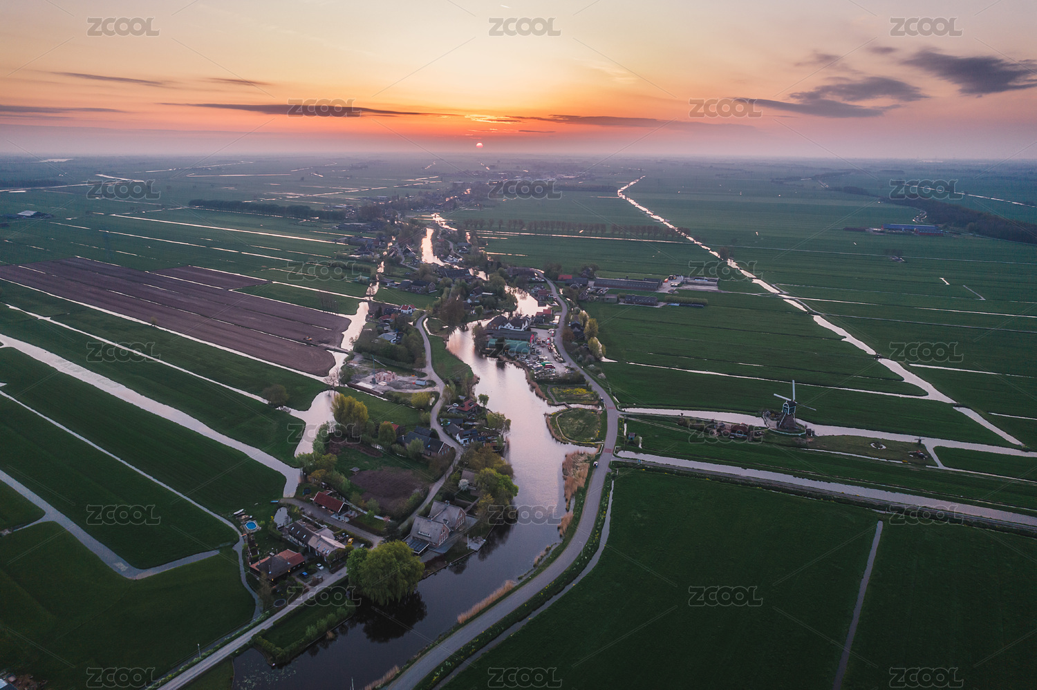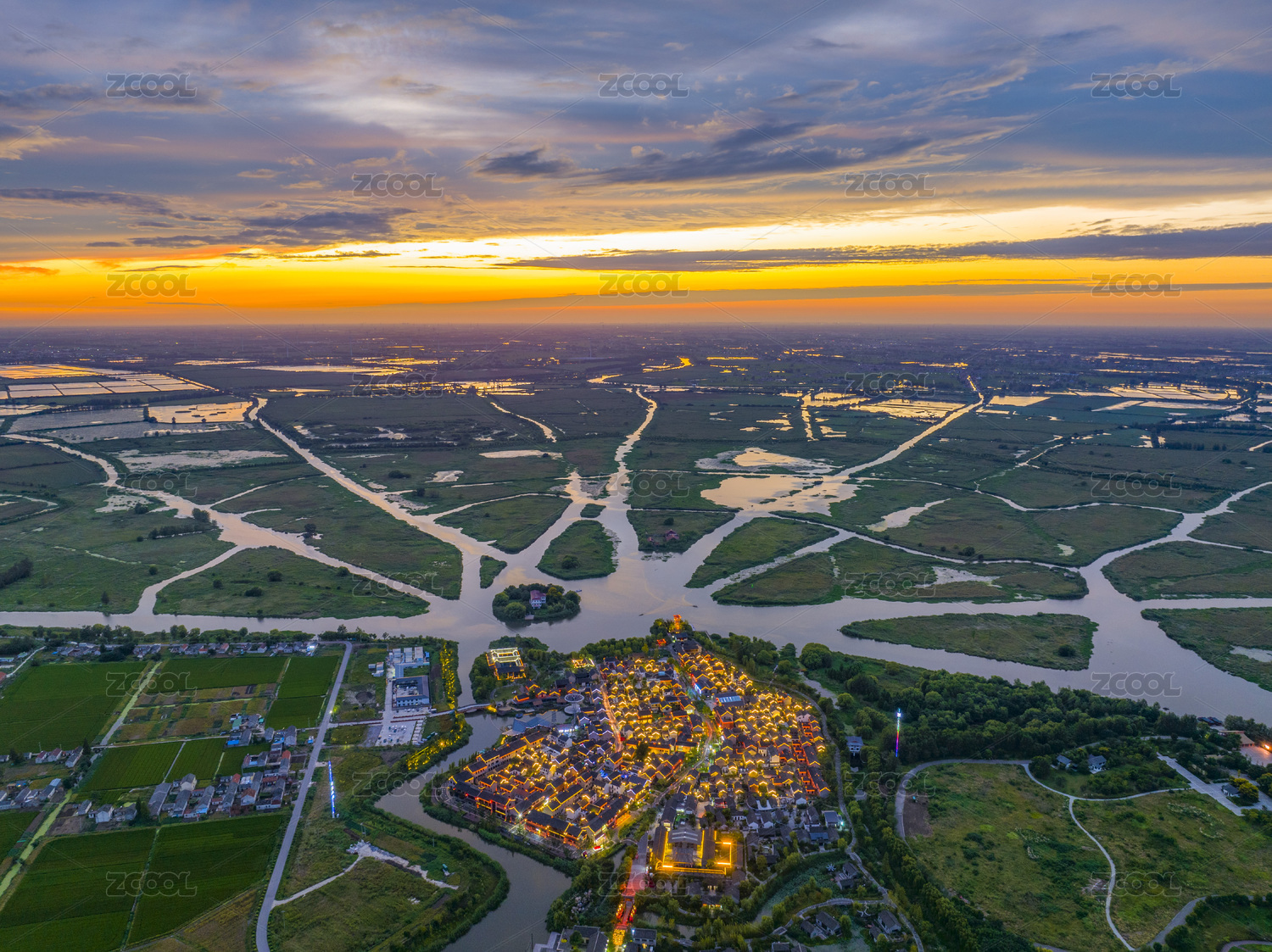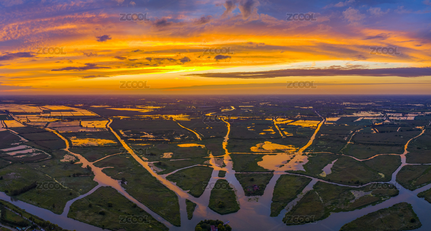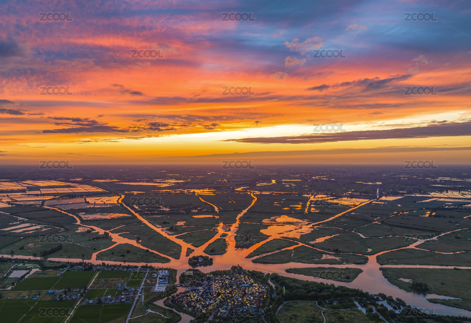 航拍中国安徽省郎溪县现代农业示范区夕阳下的田园风光