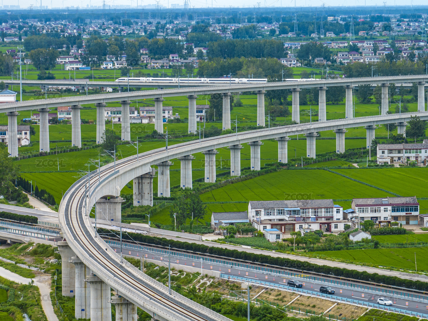 中国,高铁,铁路,运输,客运,道路,交通,田野,立交,和谐号