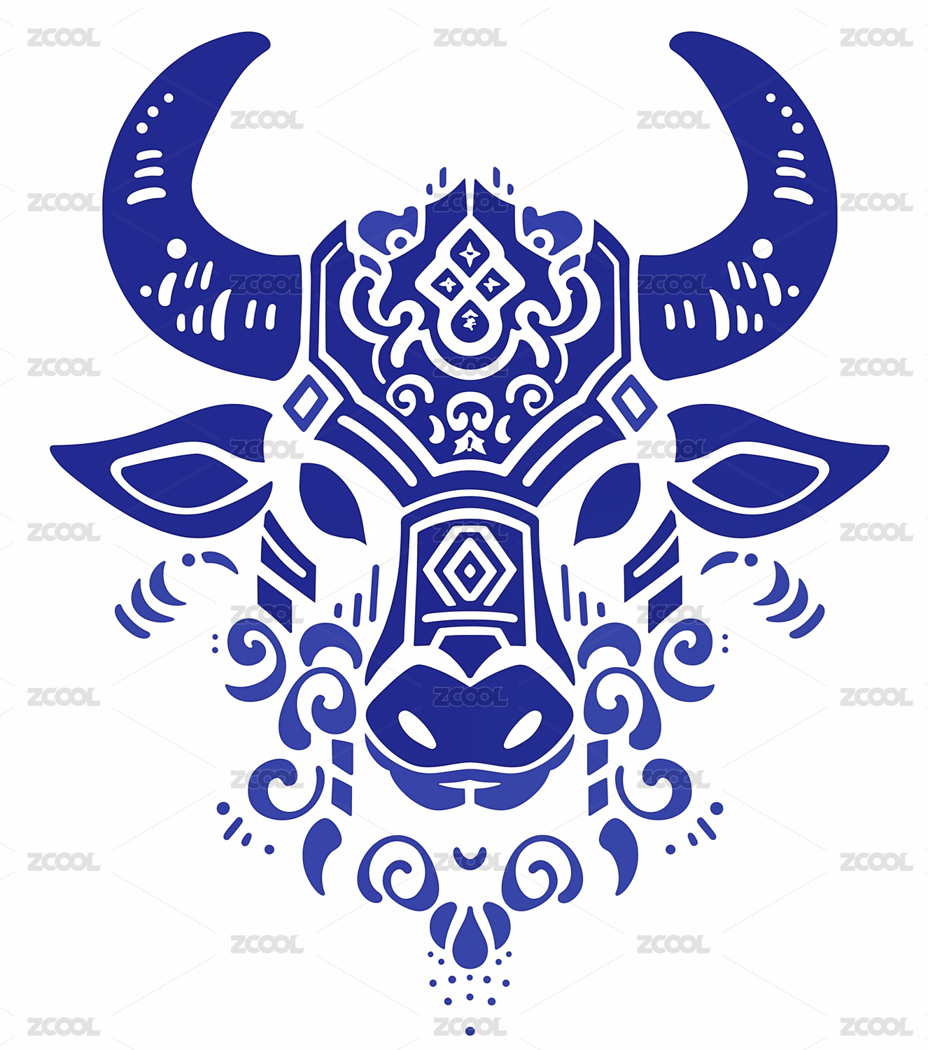牛年生肖传统吉祥图符牛气冲天 蓝底弯角