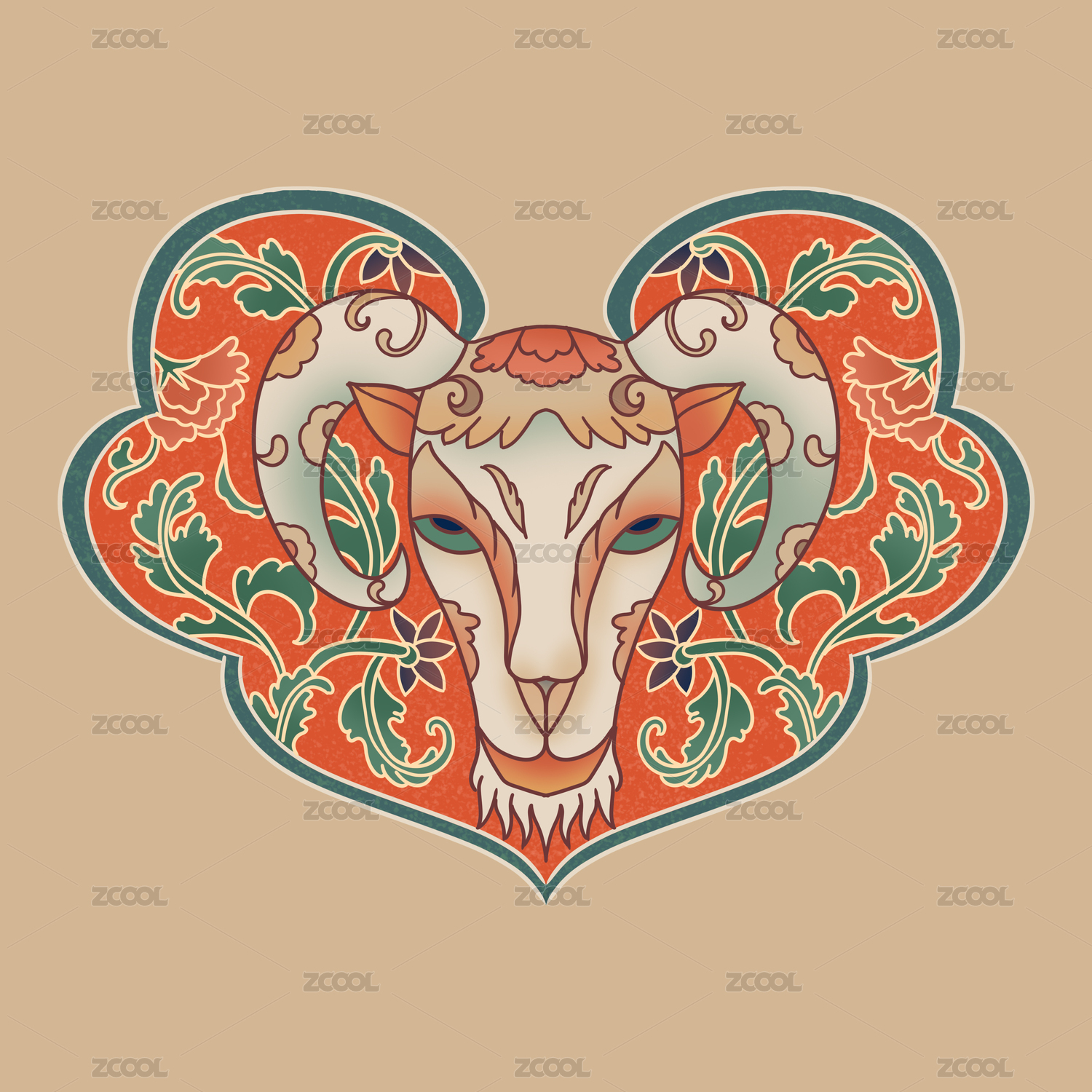 国潮十二生肖羊头传统装饰纹样卡通形象
