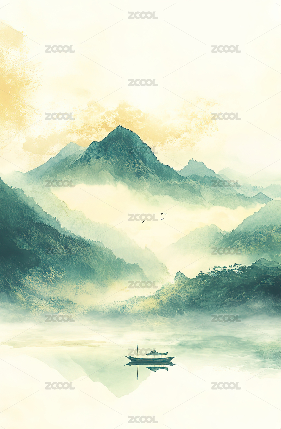大自然,敦煌,复古,国风,国画,红日,户外,渐变,江山,旅游