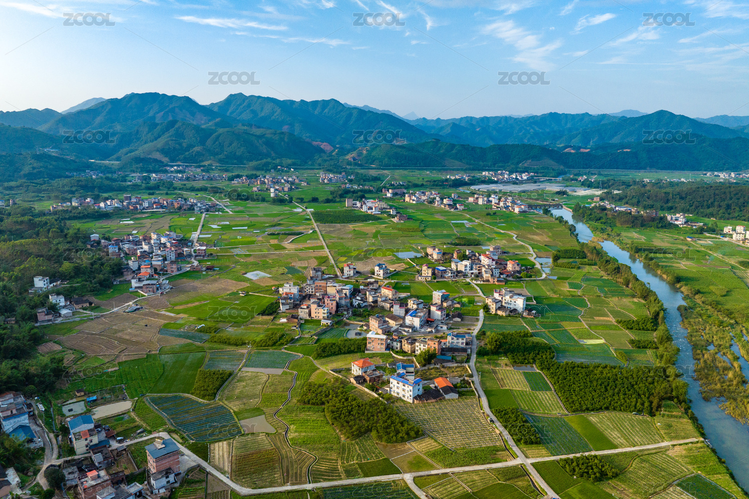 中国福建省顺昌县张墩村秋天稻田航拍风光