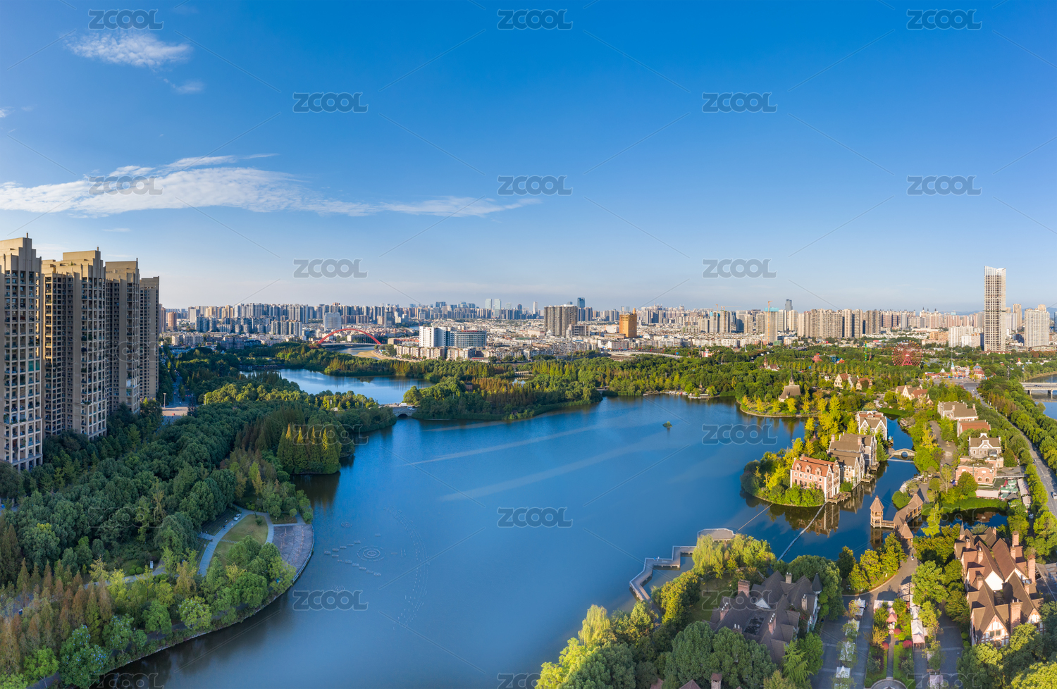 嘉兴桐乡市凤凰湖城市风光