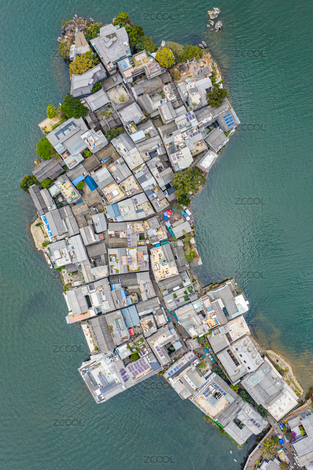 航拍云南大理双廊古镇玉几岛洱海边古村落群