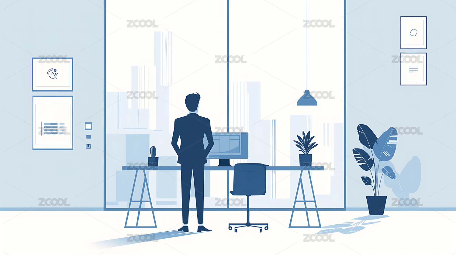 扁平风蓝色办公室的男人