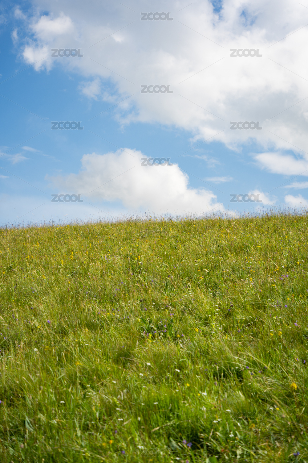 蓝天白云下的草地