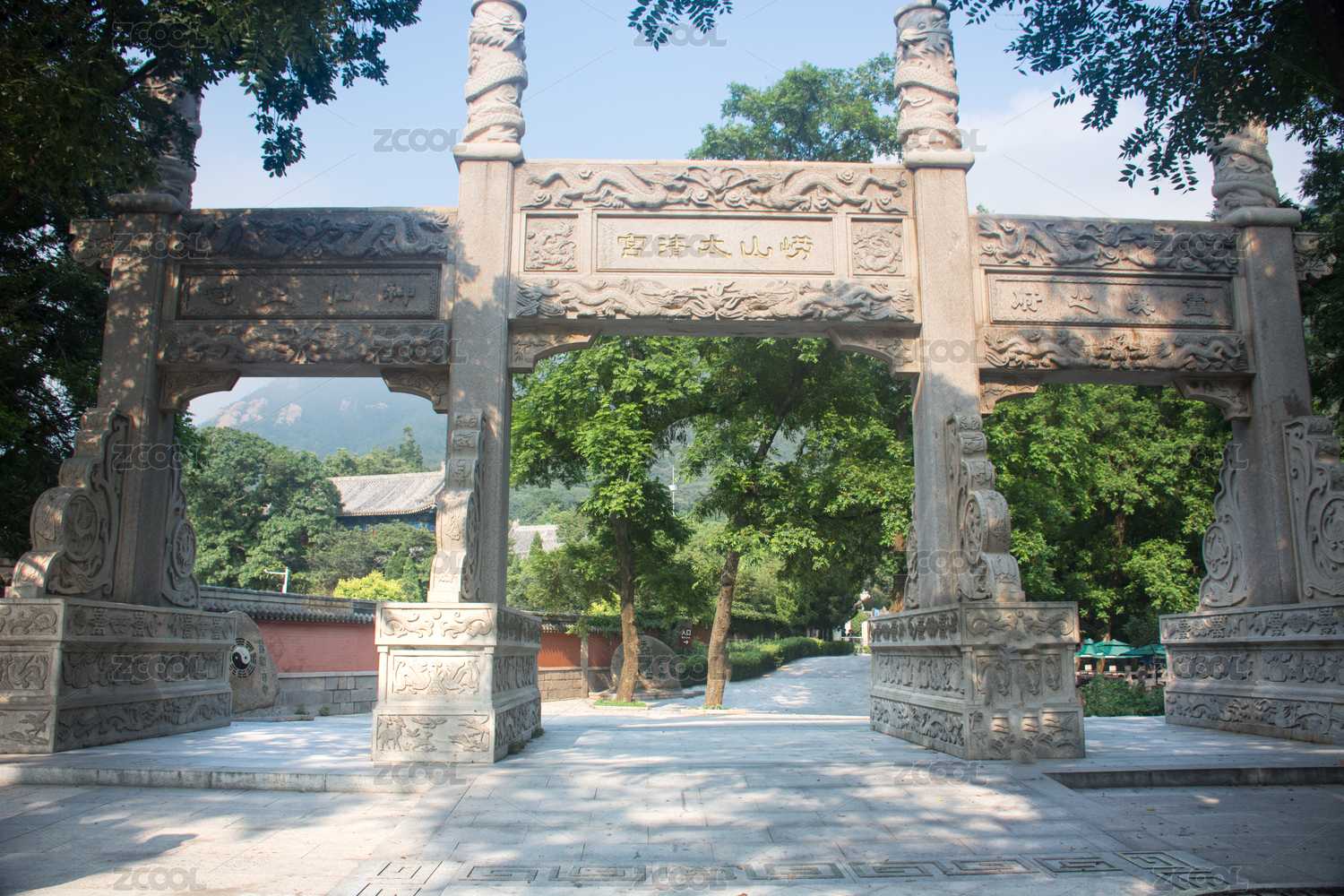中国山东省临沂市云蒙景区内的牌楼石雕
