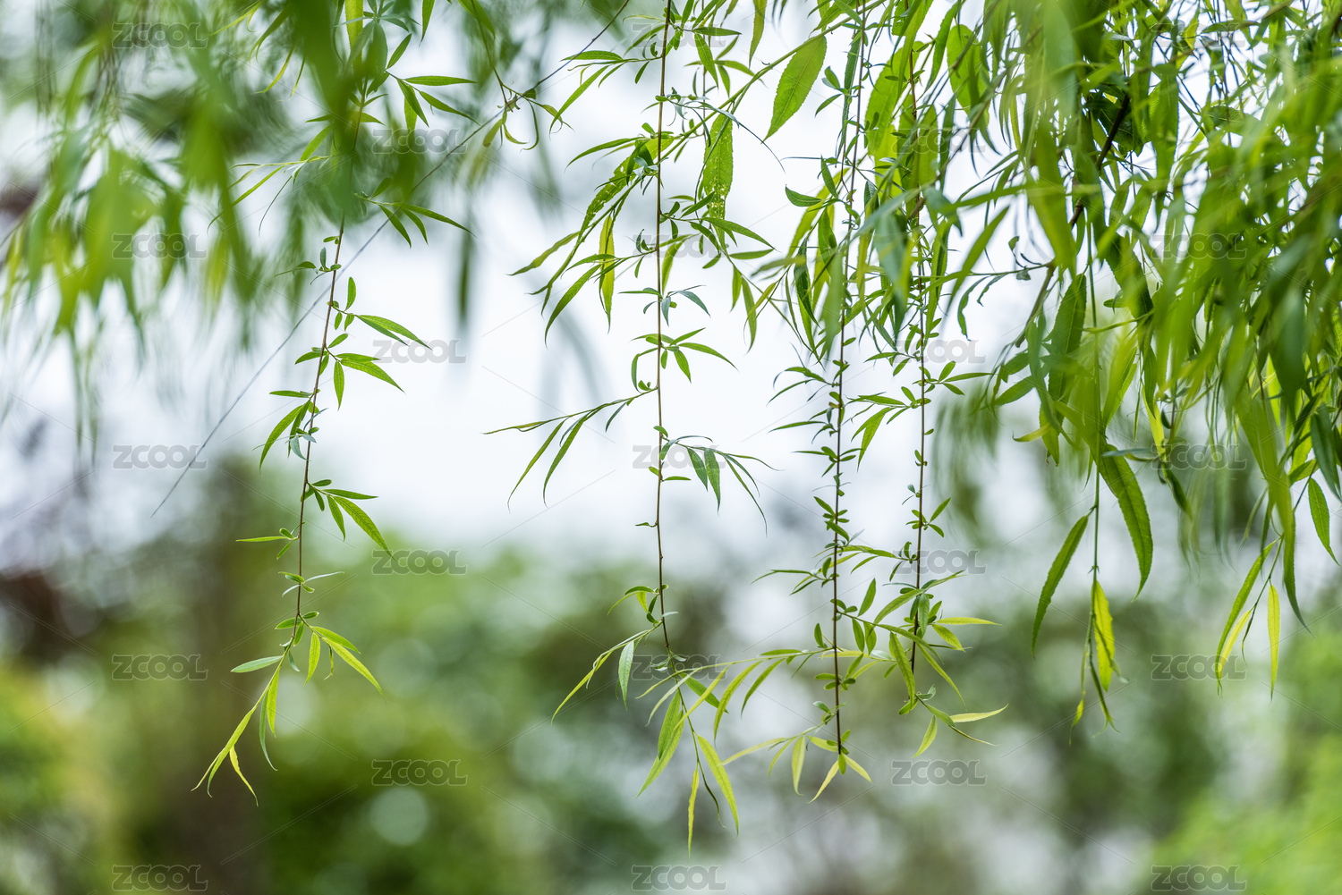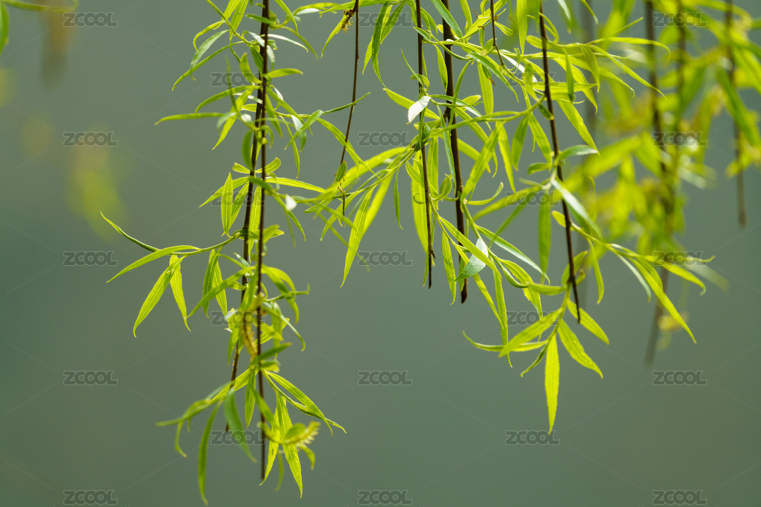 春天绿色柳树枝