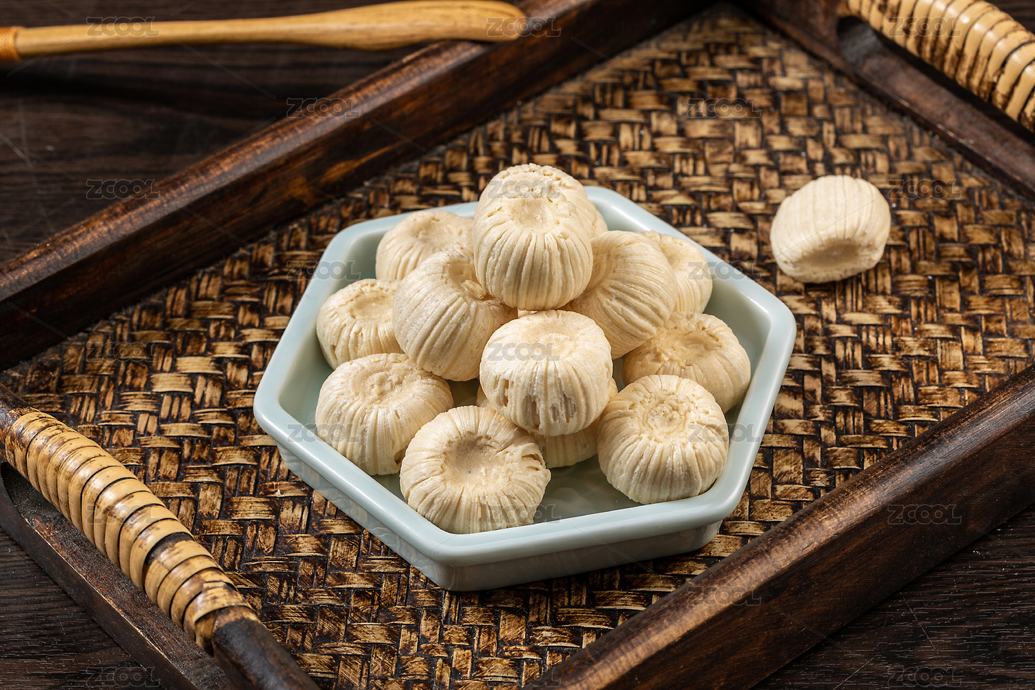 餐桌上装在小碗里的汉族古老传统名点糖瓜
