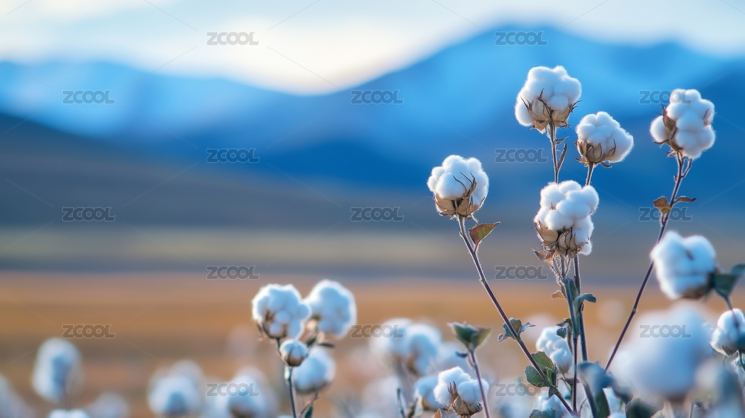 雪山下的棉花田风景