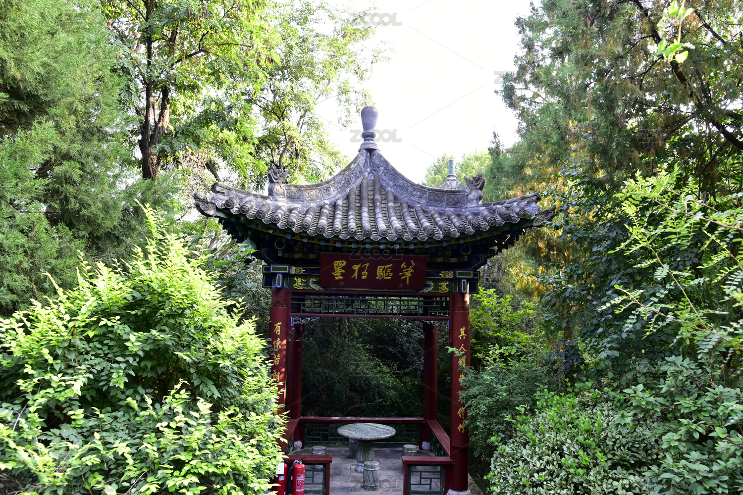 红色亭子和长廊