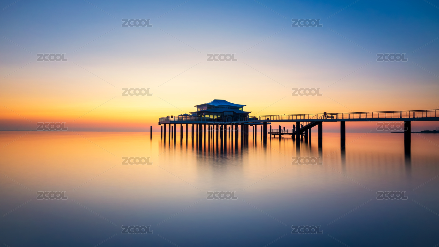 天津滨海新区渤海湾东疆港东堤公园海上日出