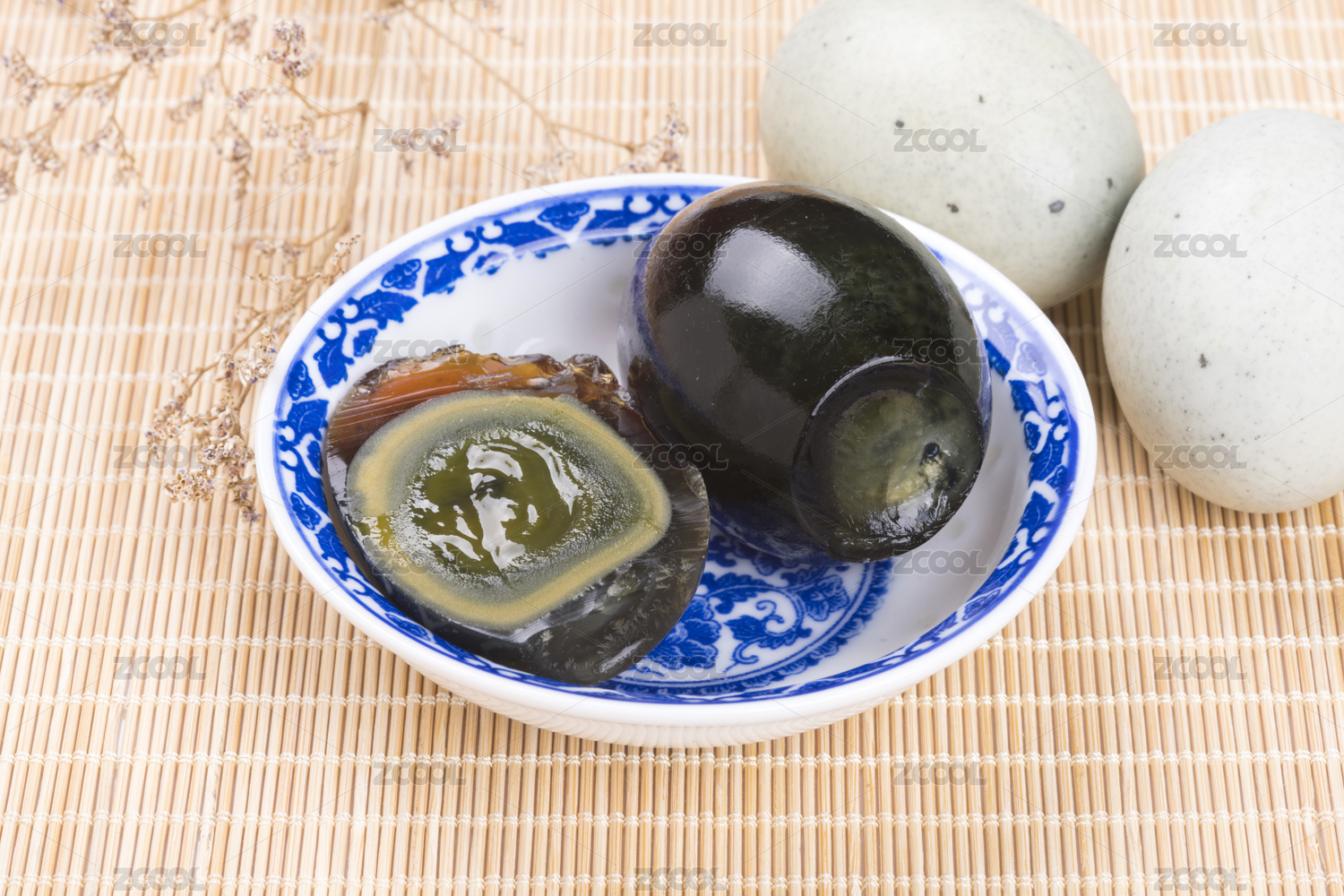 白底上的皮蛋松花蛋