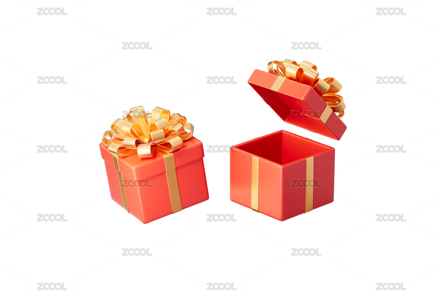 3D渲染的打开的红色礼盒礼物电商购物促销