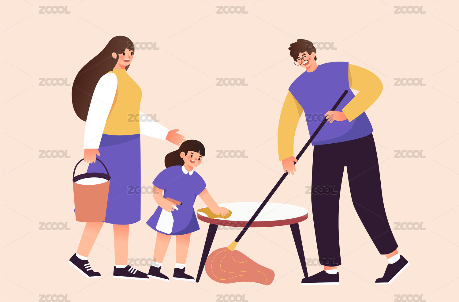 家庭大扫除插画