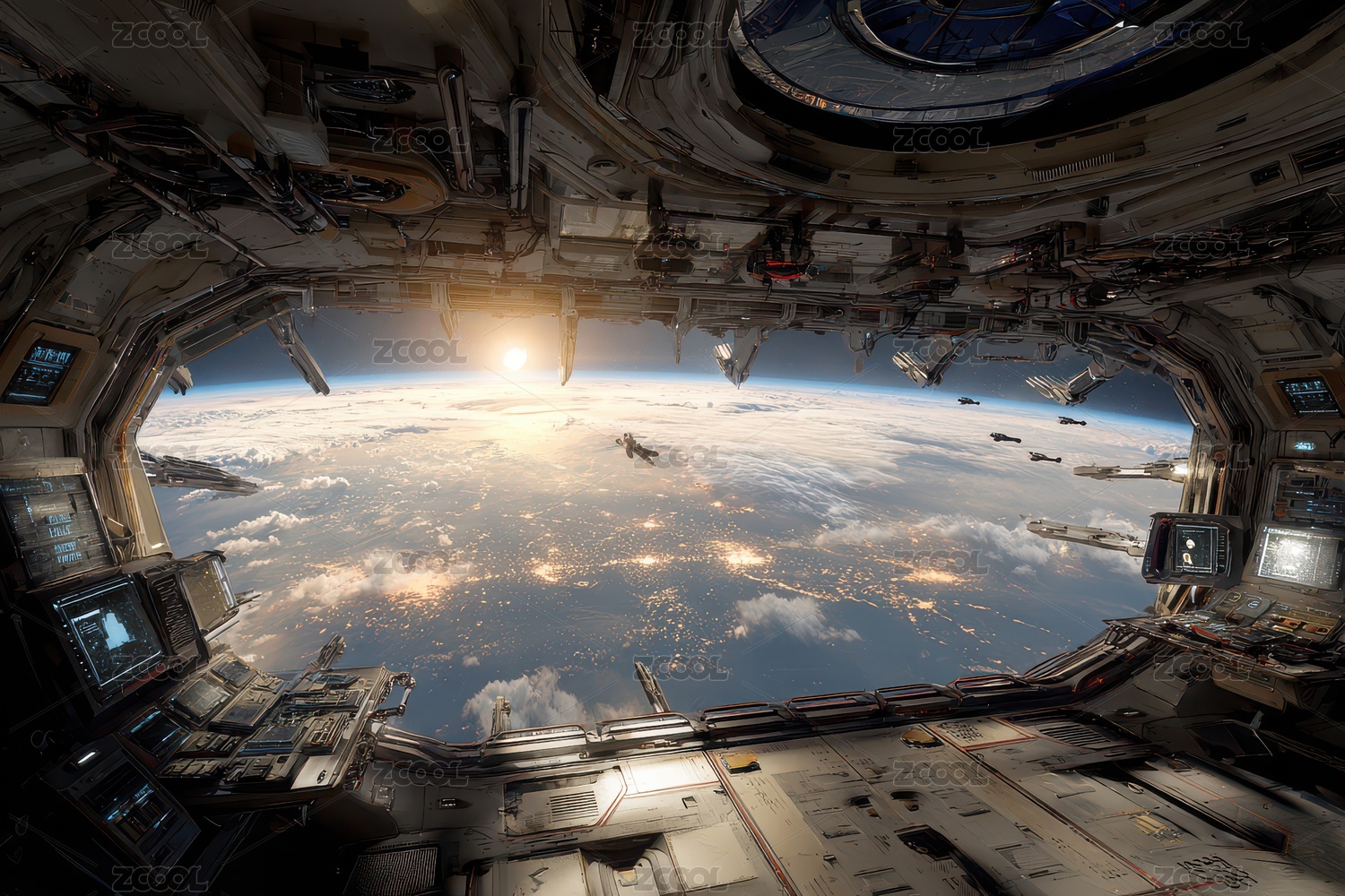 太空俯视地球美丽景象宇宙蓝色科技感背景