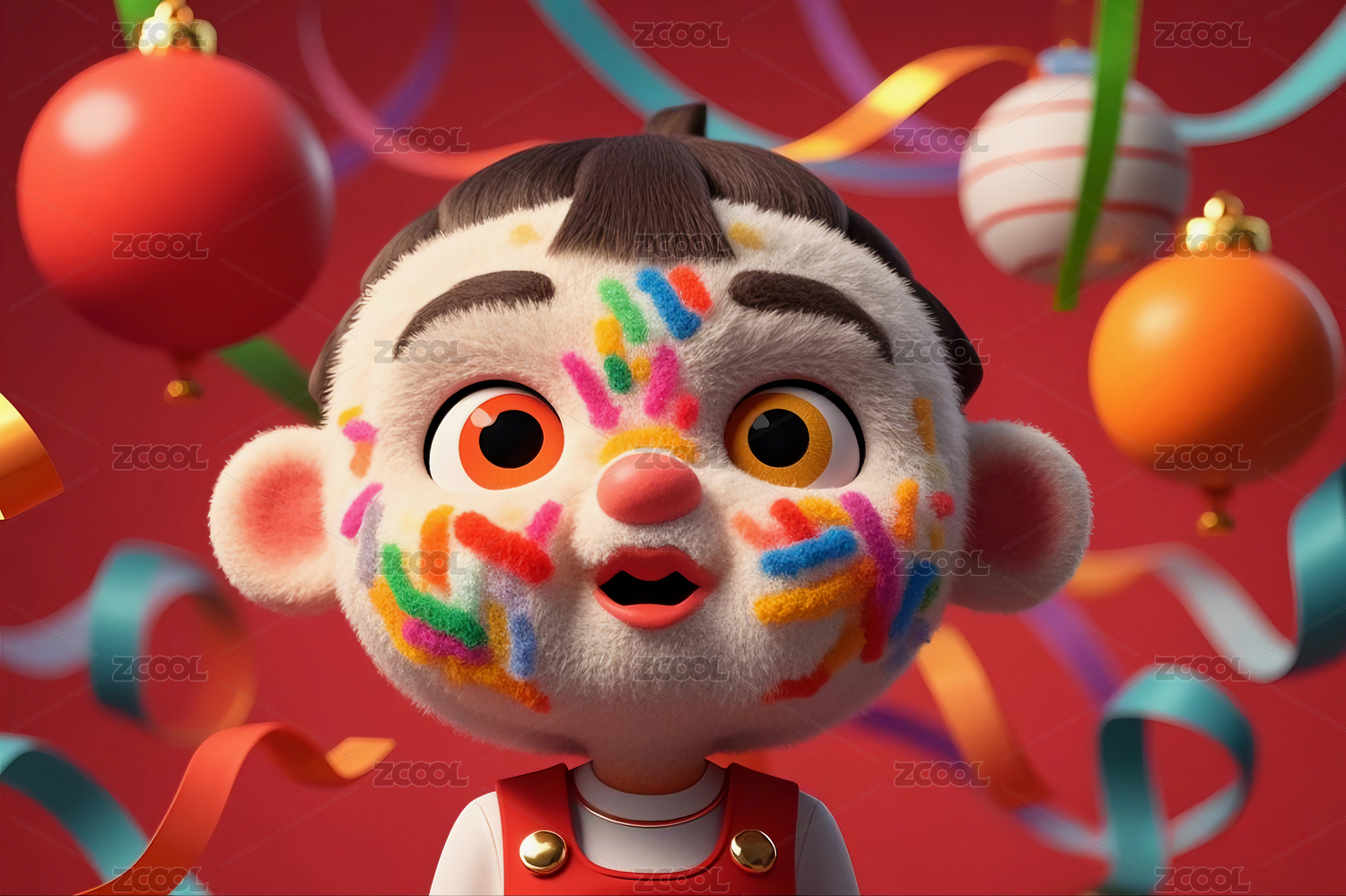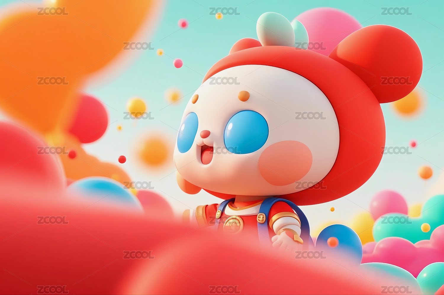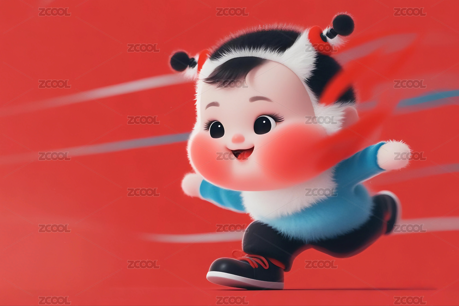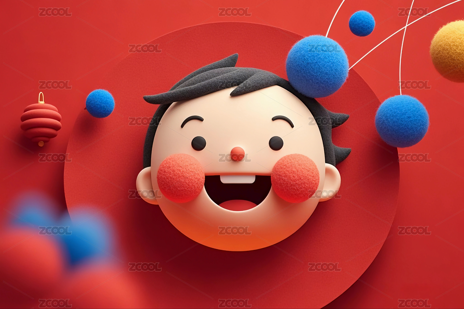 红色背景前喜庆欢度节日的3D卡通娃娃形象