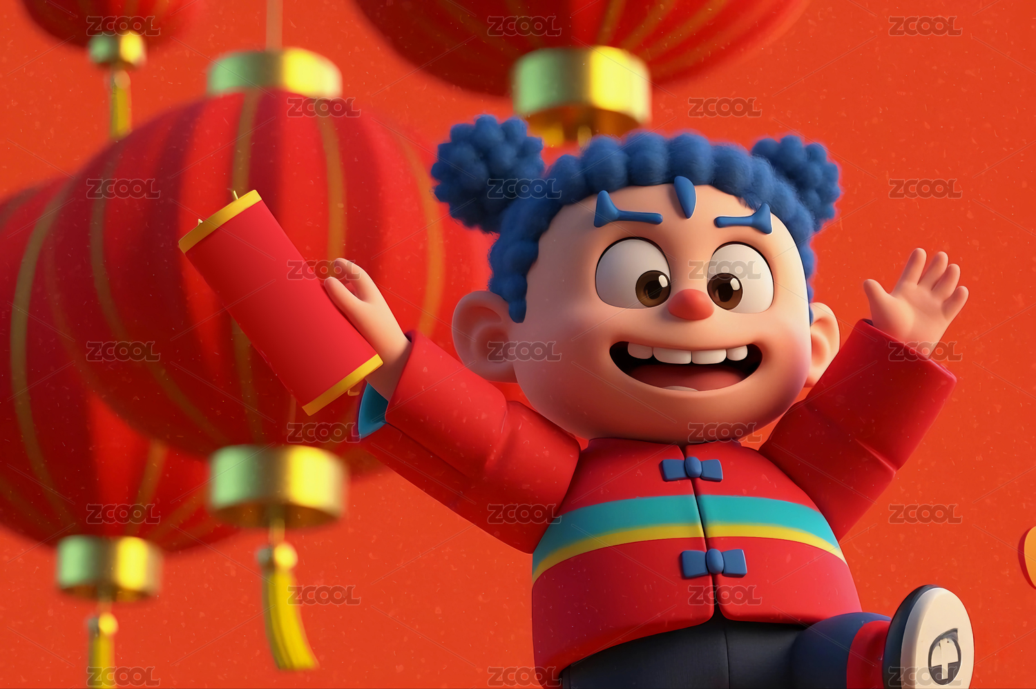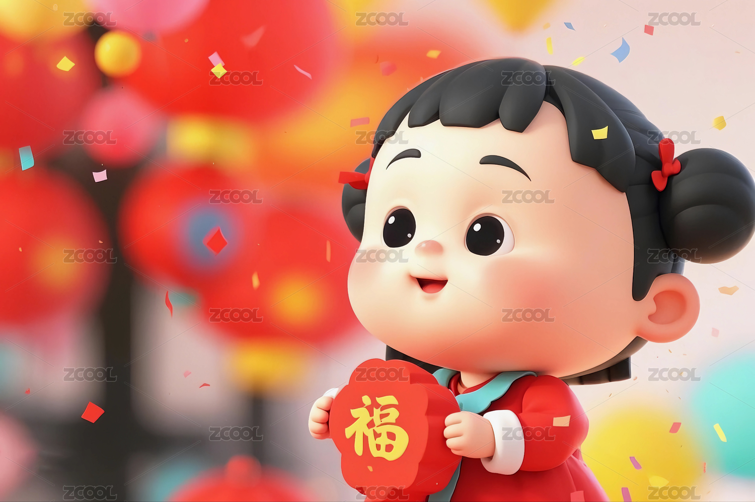 3D传统春节人物商业设计青春可爱三维插画