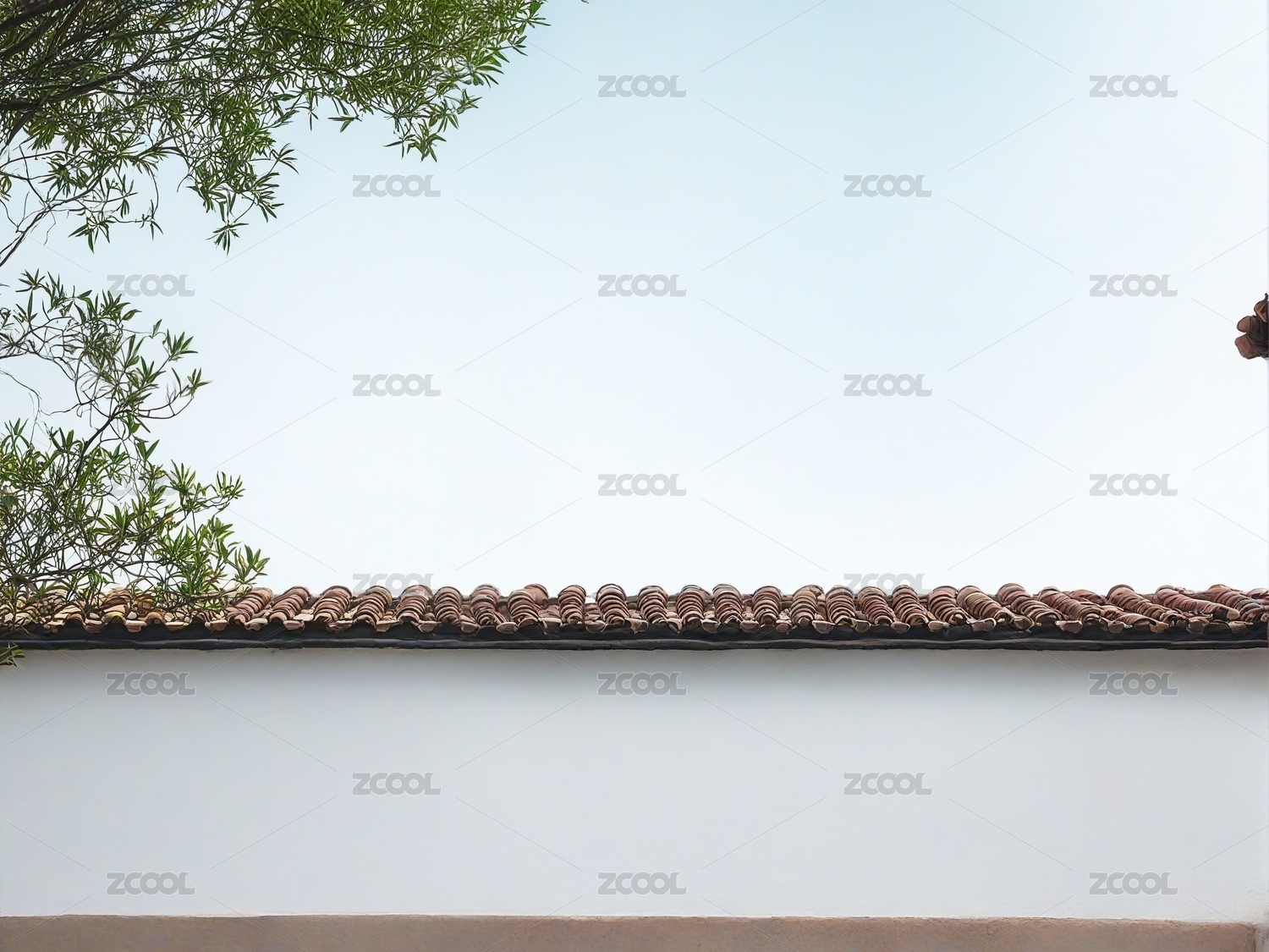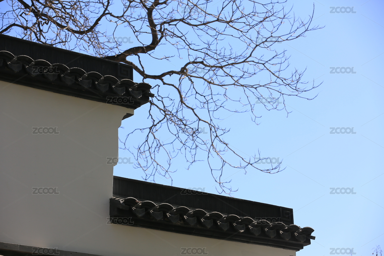 具有徽派建筑风格灰瓦白墙的公园围墙