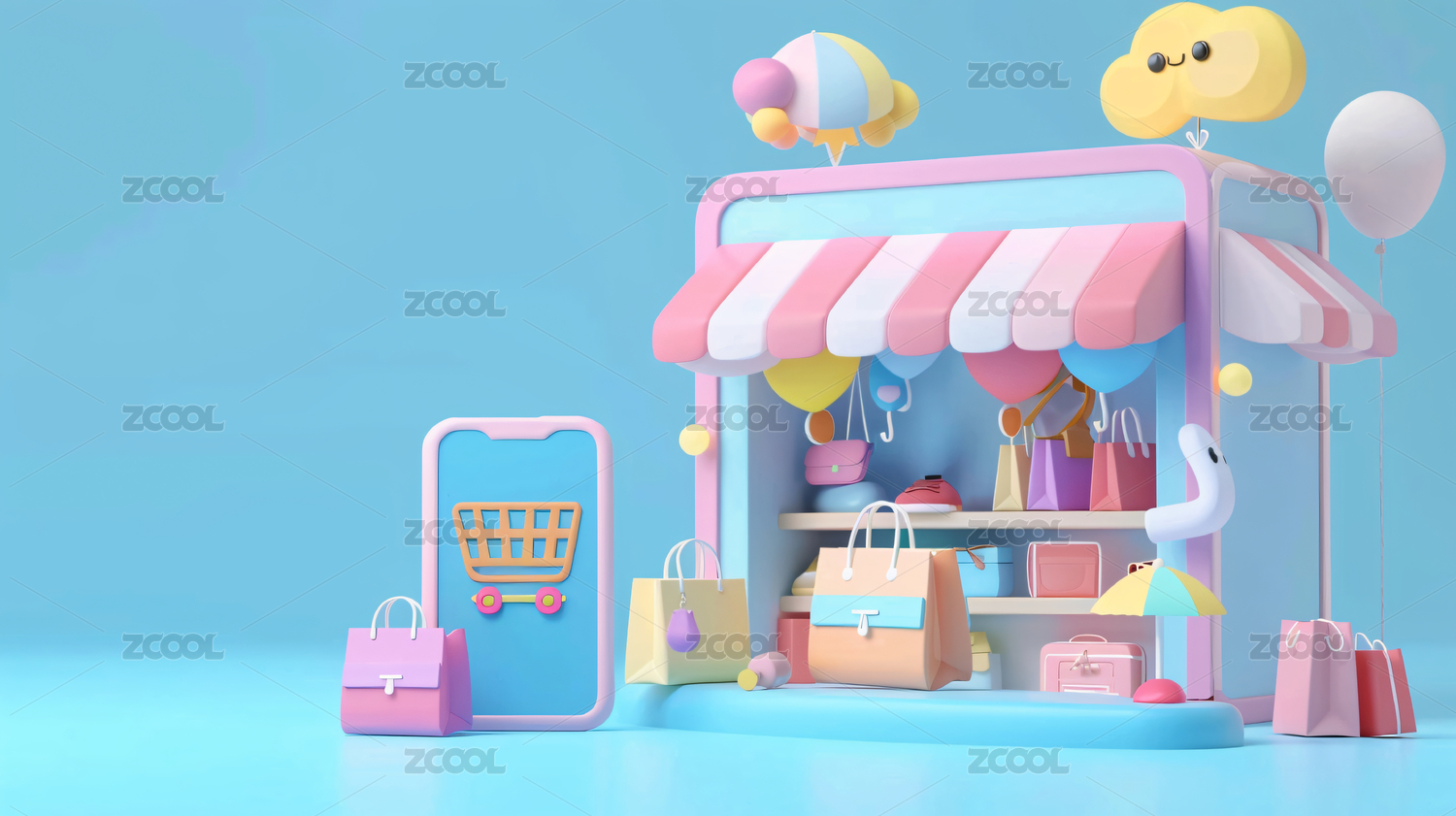 3D创意购物主题电商背景