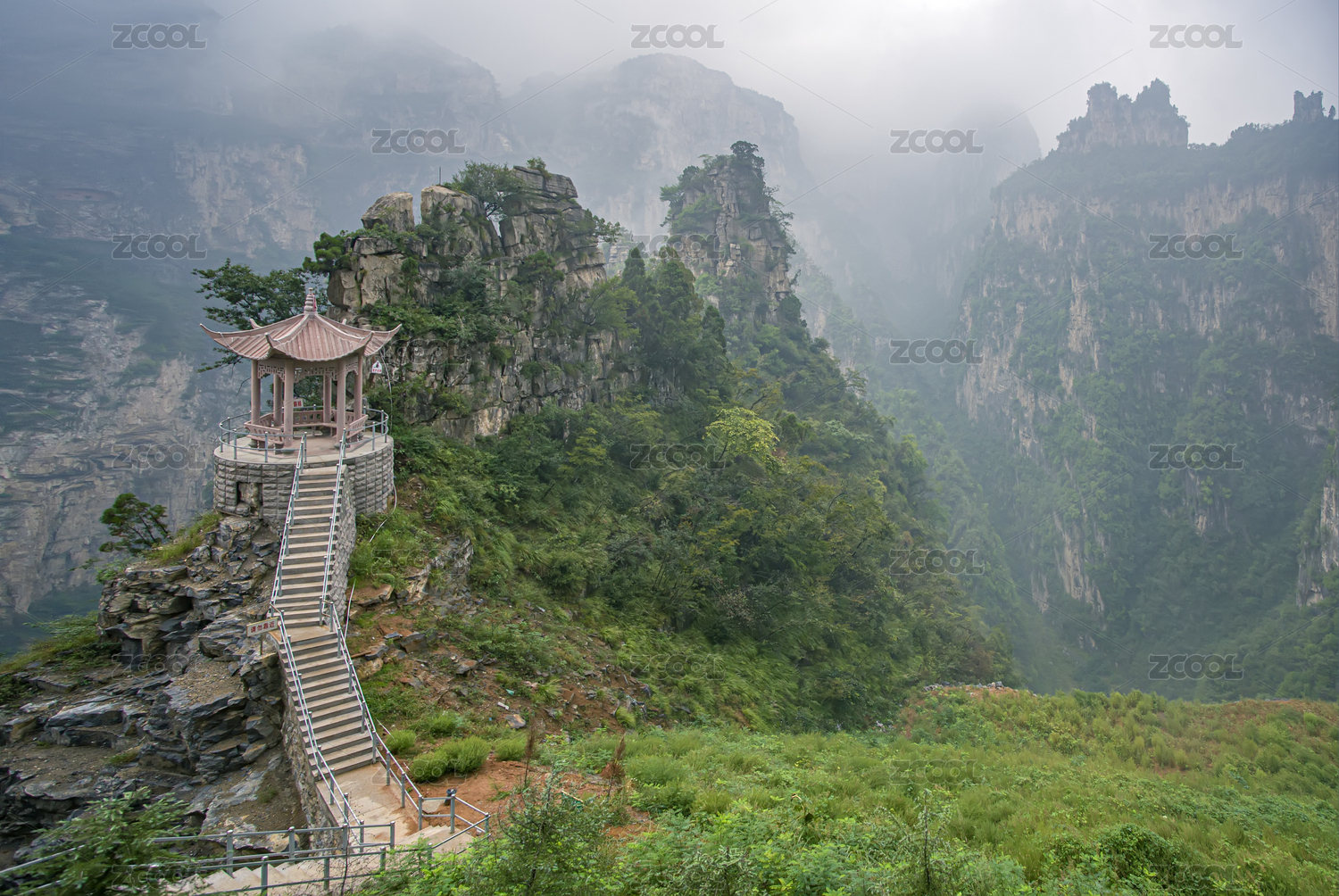 亚洲,中国,河北,夏日,季节,山脉,树木,树,植物,云雾