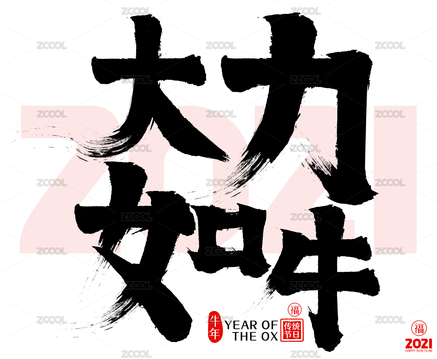2021财如牛毛牛年红包鞭炮矢量书法字