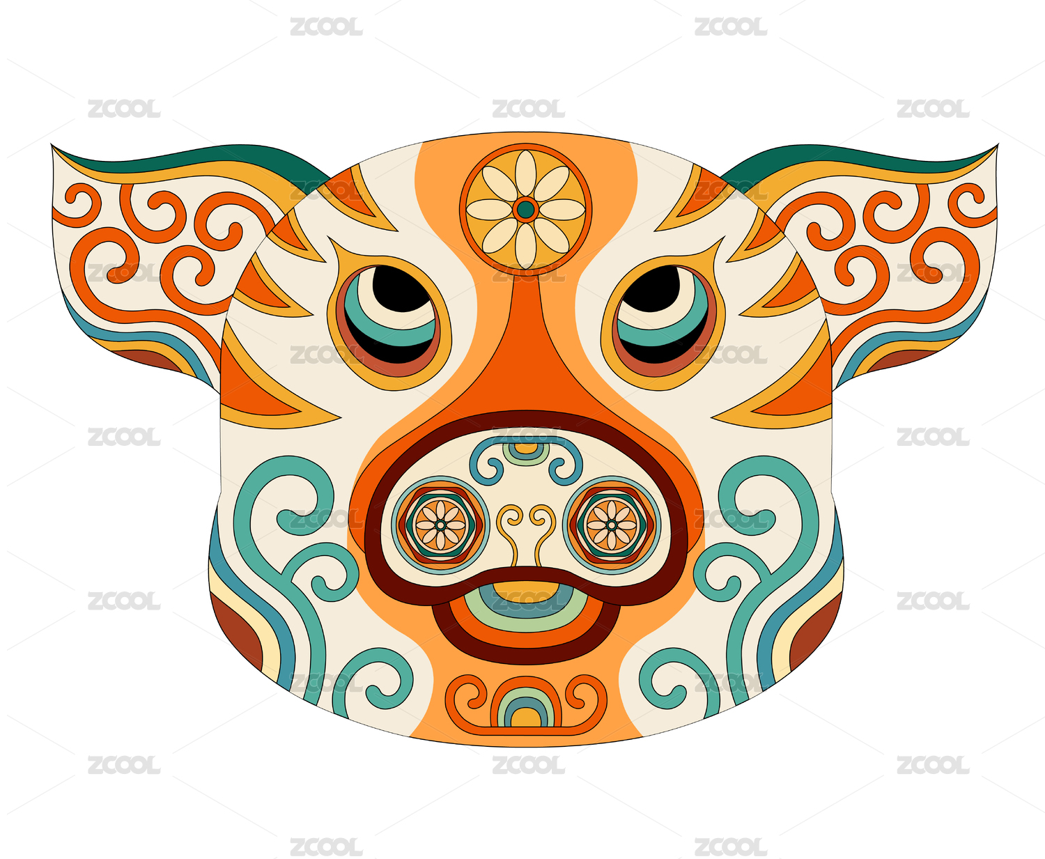 国潮猪头十二生肖传统装饰纹样卡通形象