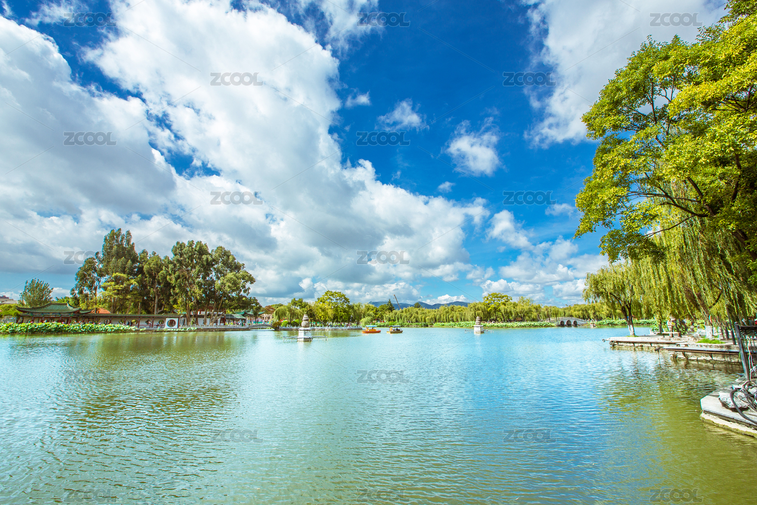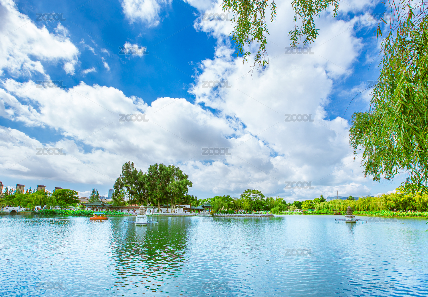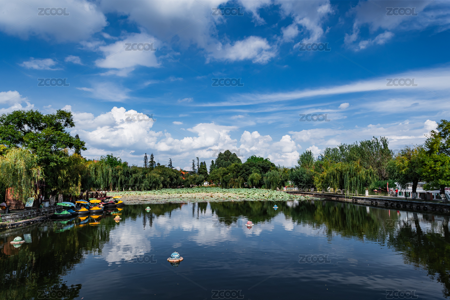 中国云南省昆明大观公园,湖里的荷花已盛开
