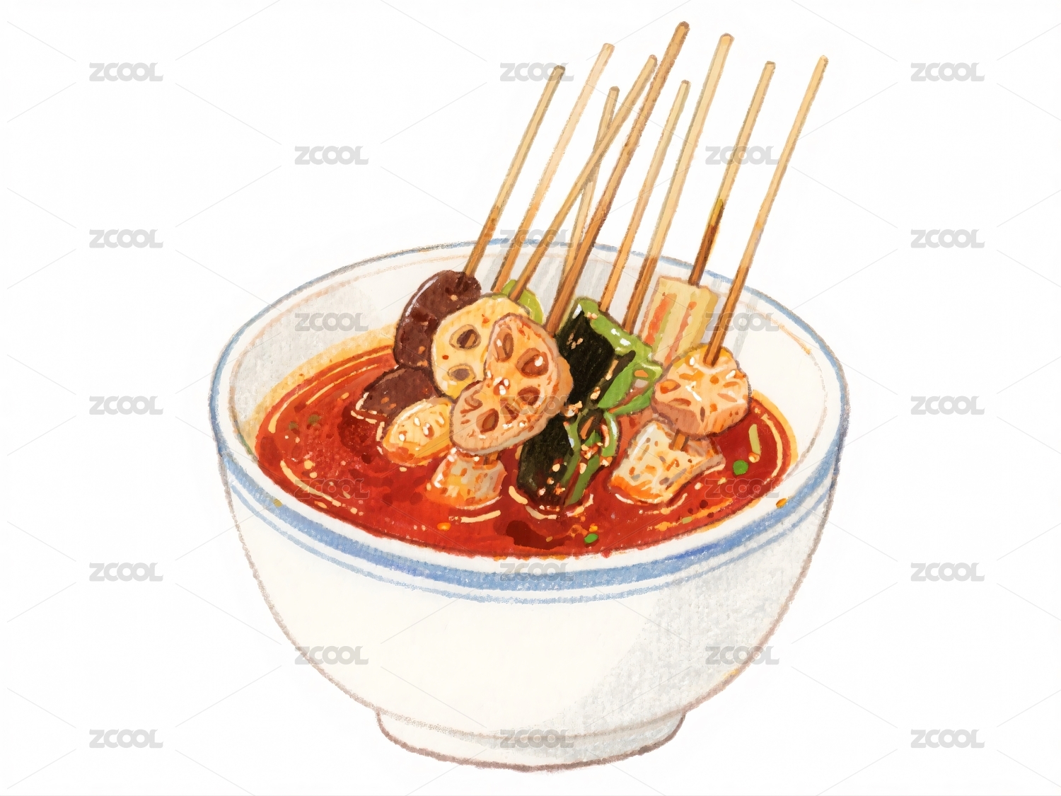 钵钵鸡麻辣串四川火锅冷串卡通矢量插画素材