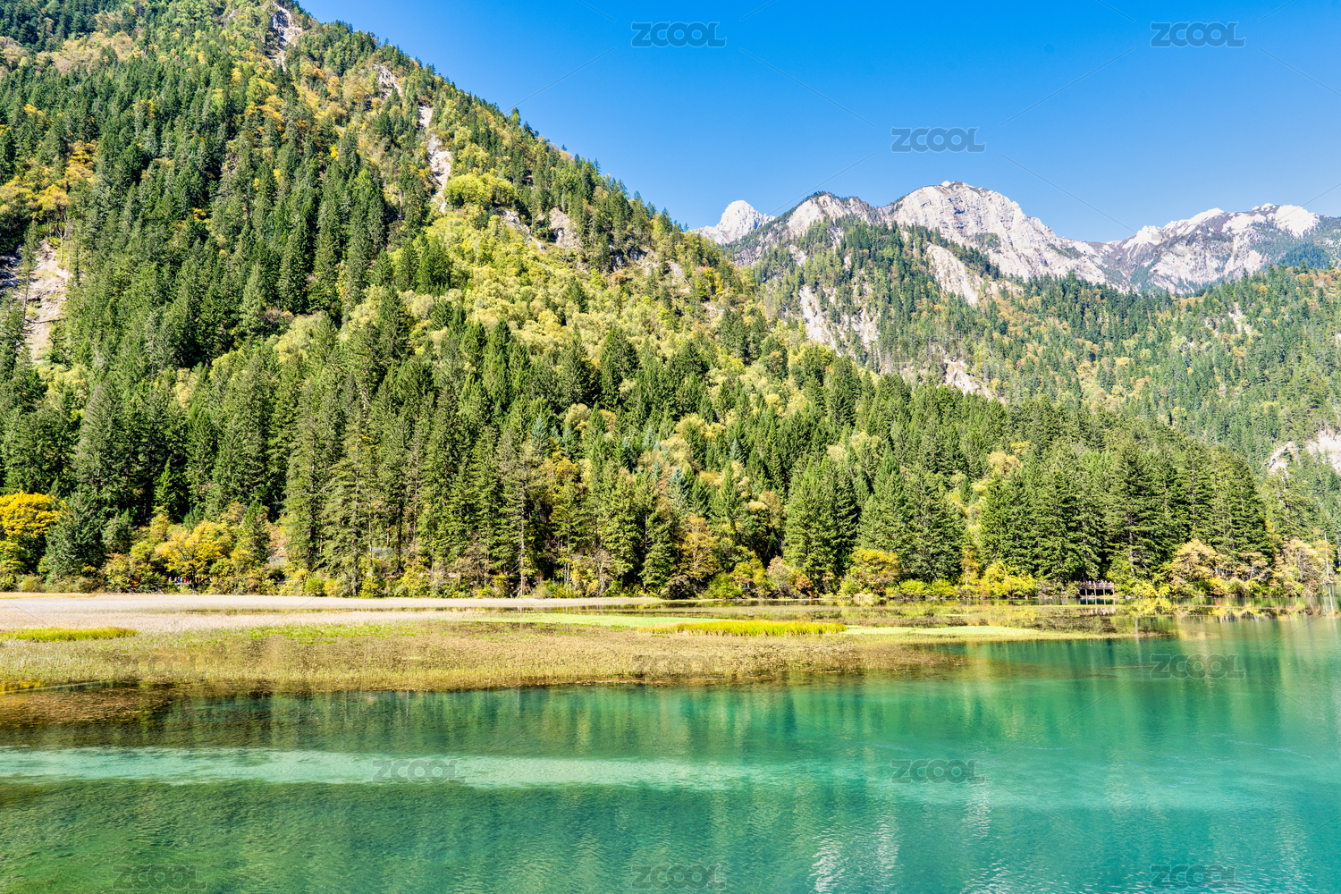 四川省阿坝九寨沟-蓝天下的湖光山色