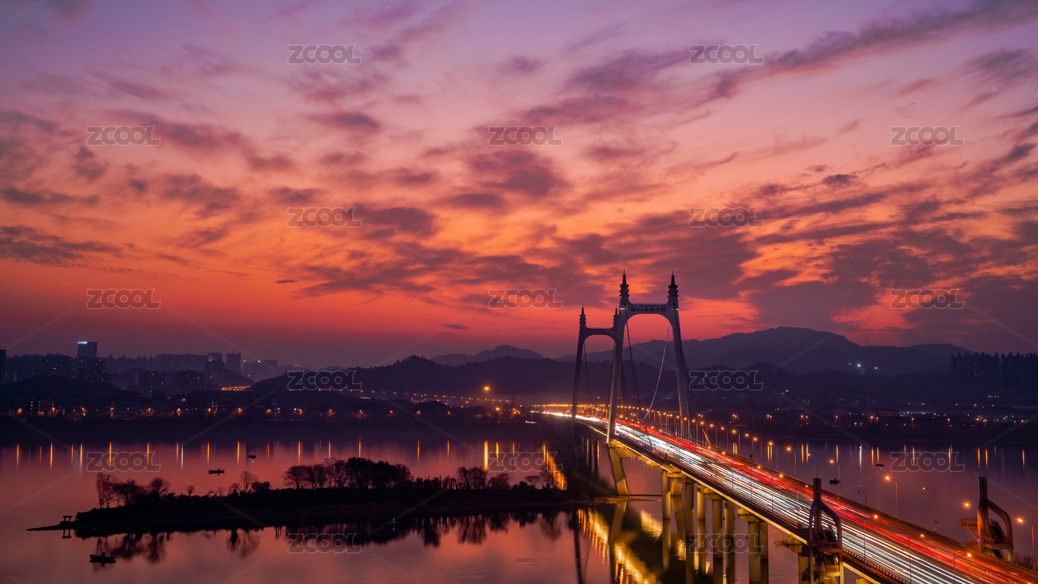 长沙市橘子洲大桥湘江一桥日落黄昏夜景
