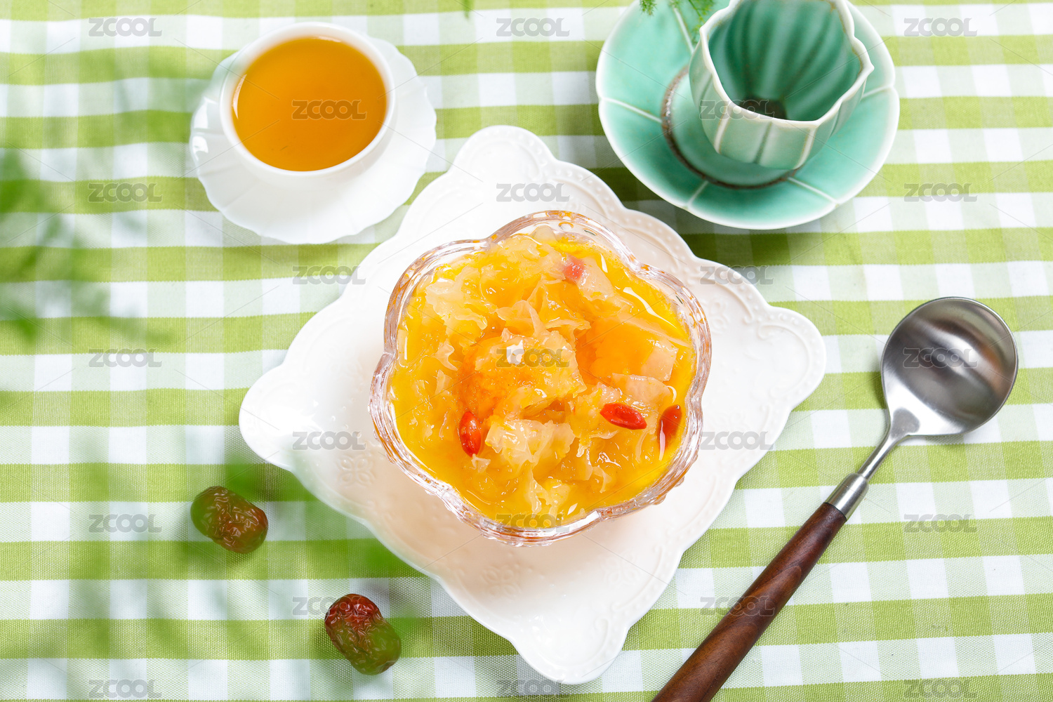 桌面上的碗里的美味可口的冰糖炖雪梨