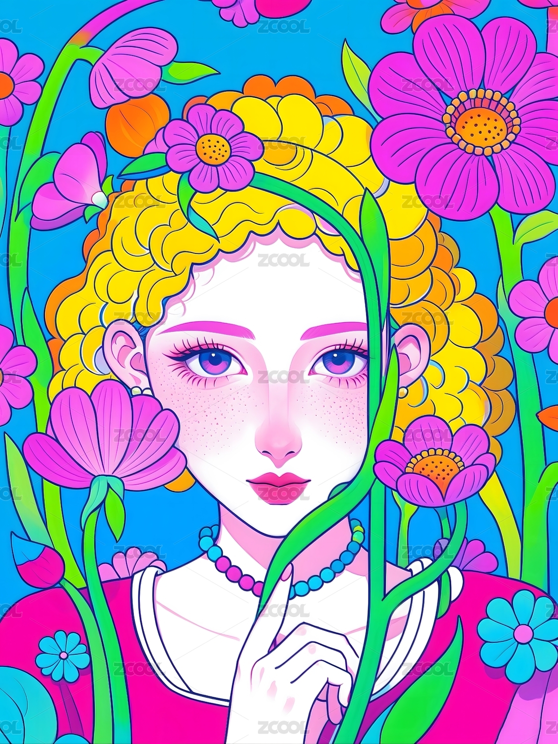 花海中的少女