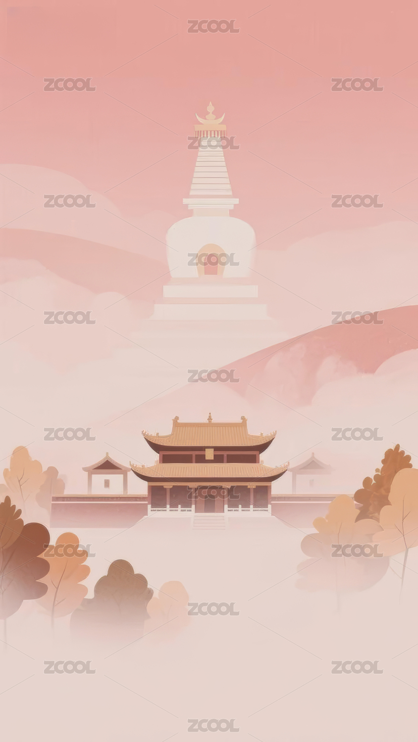 国潮风室外场景宫殿寺庙屋檐台阶背景插画