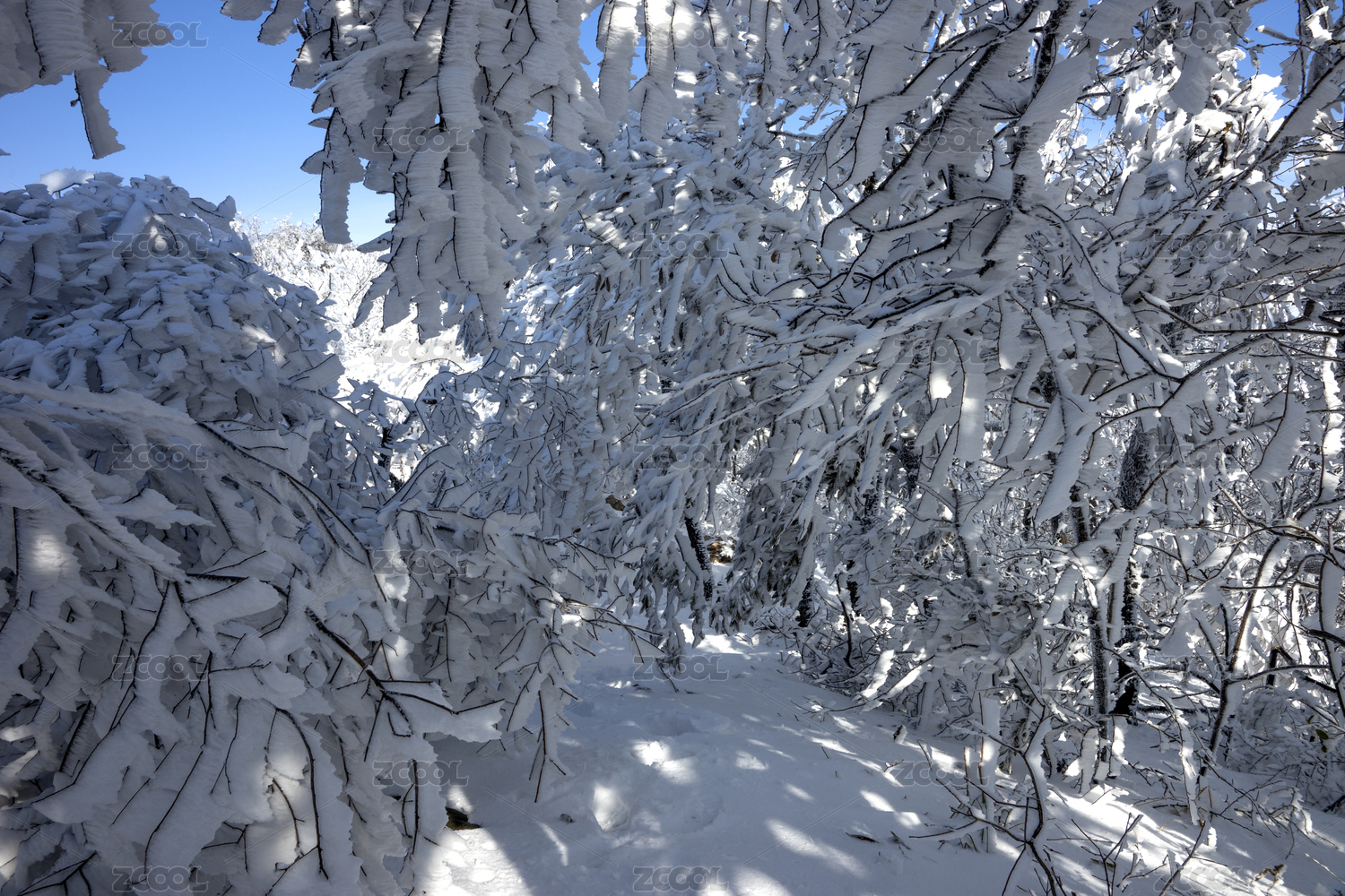 西安秦岭冬季雪山雾凇景观