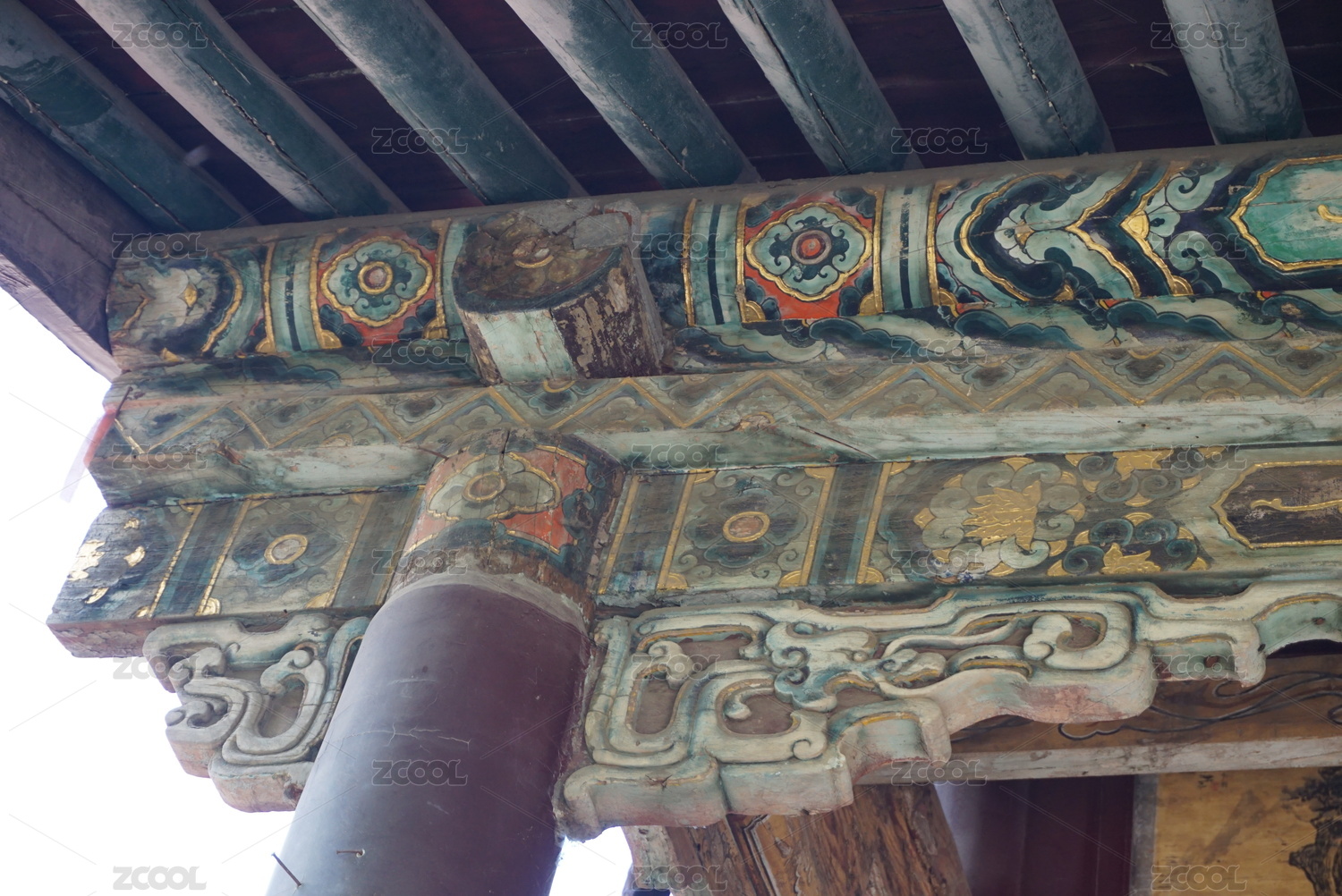 古建筑飞檐斗拱彩绘特写