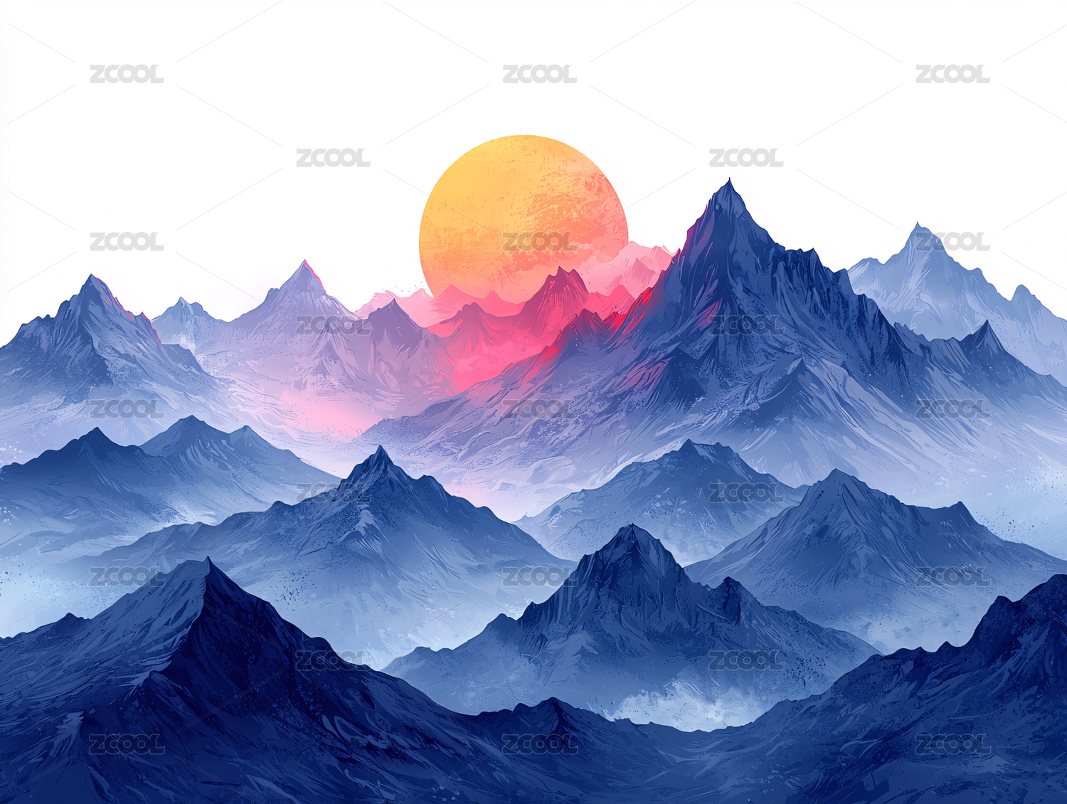 分离着色,高山,自然,插画,艺术,剪影,户外,地形,设计,旅行