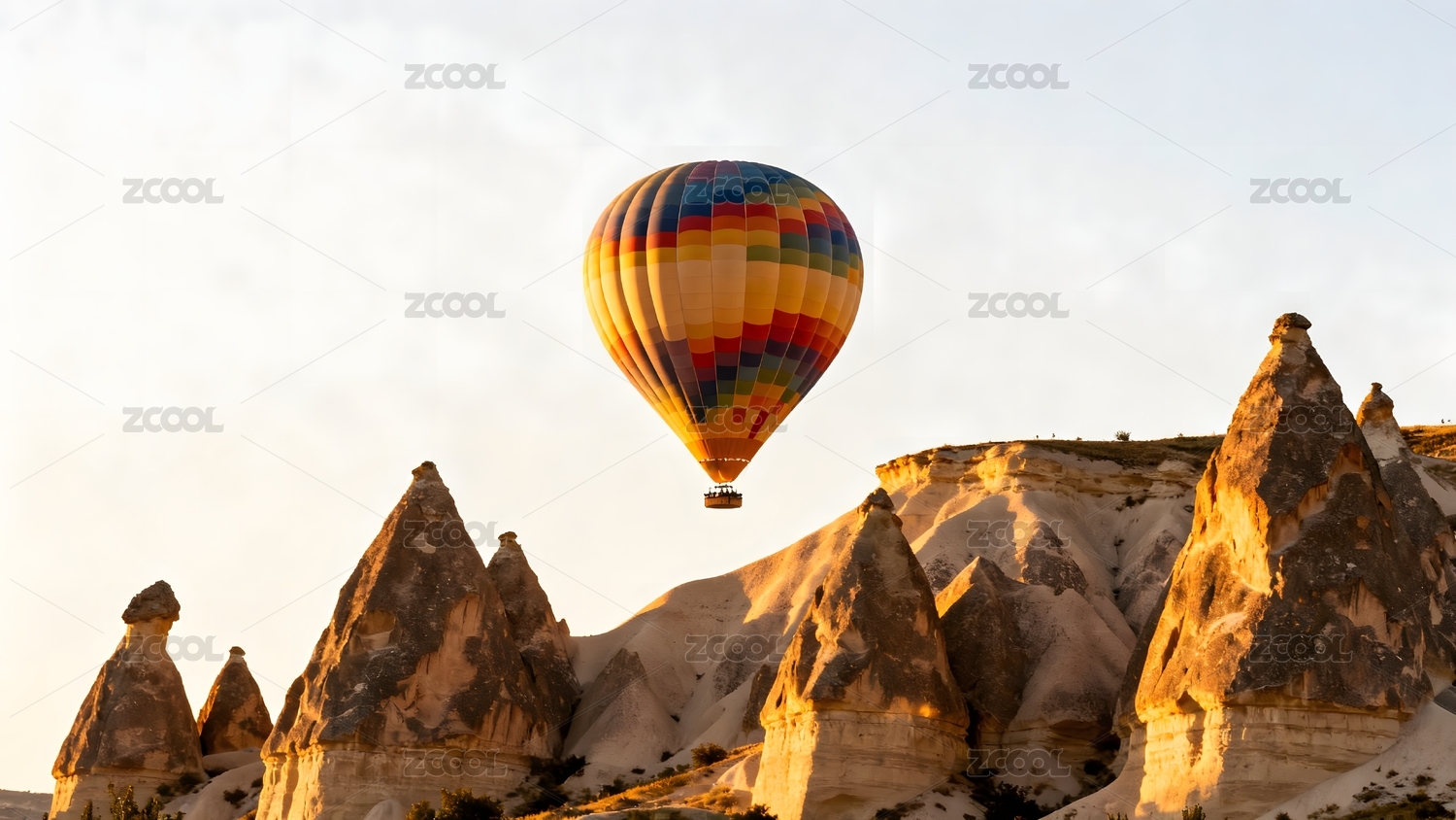 旭日下卡帕多西亚热独特的地质地貌和气球