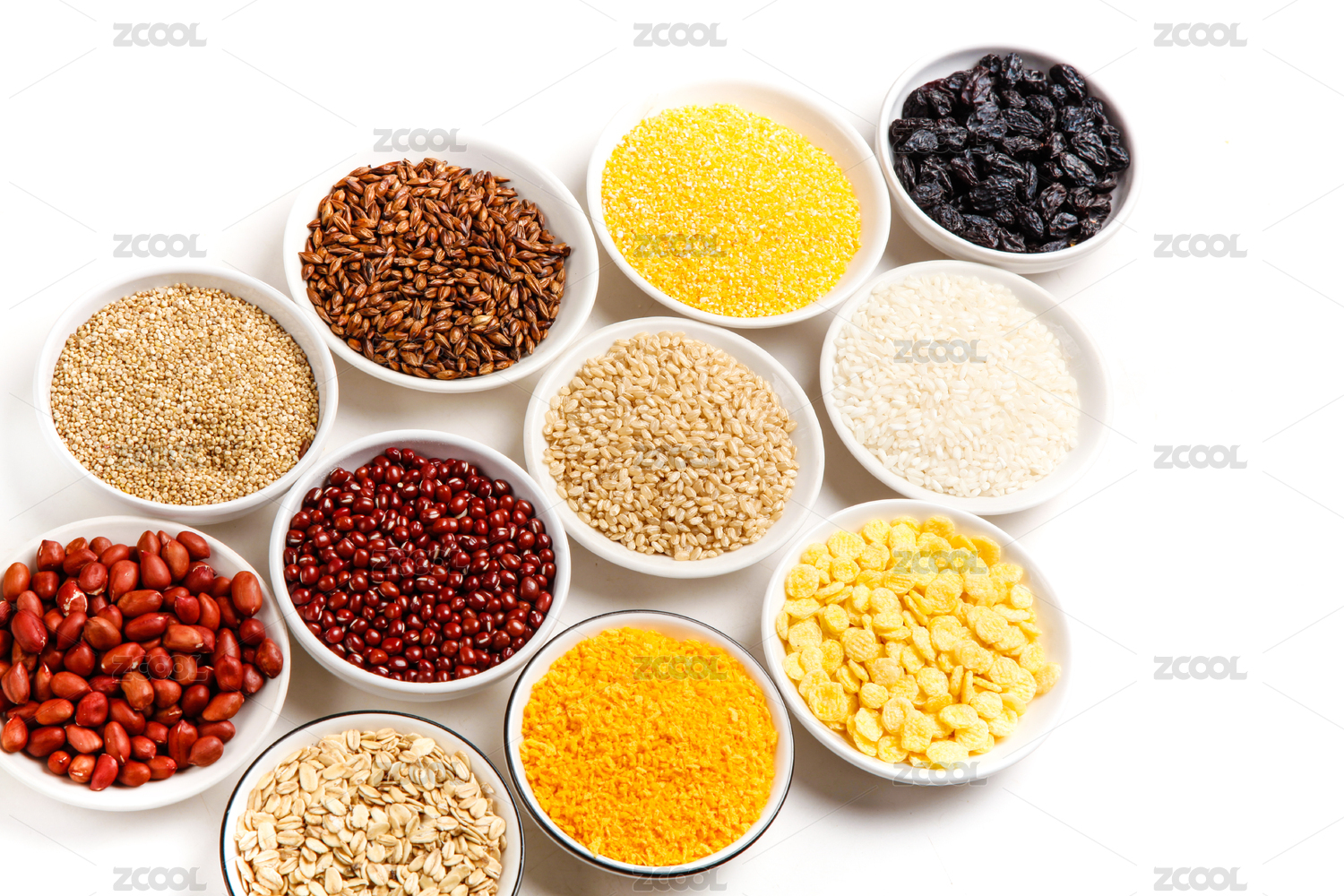 杂粮粗粮红豆绿豆小米黄豆黑豆花生特写白底