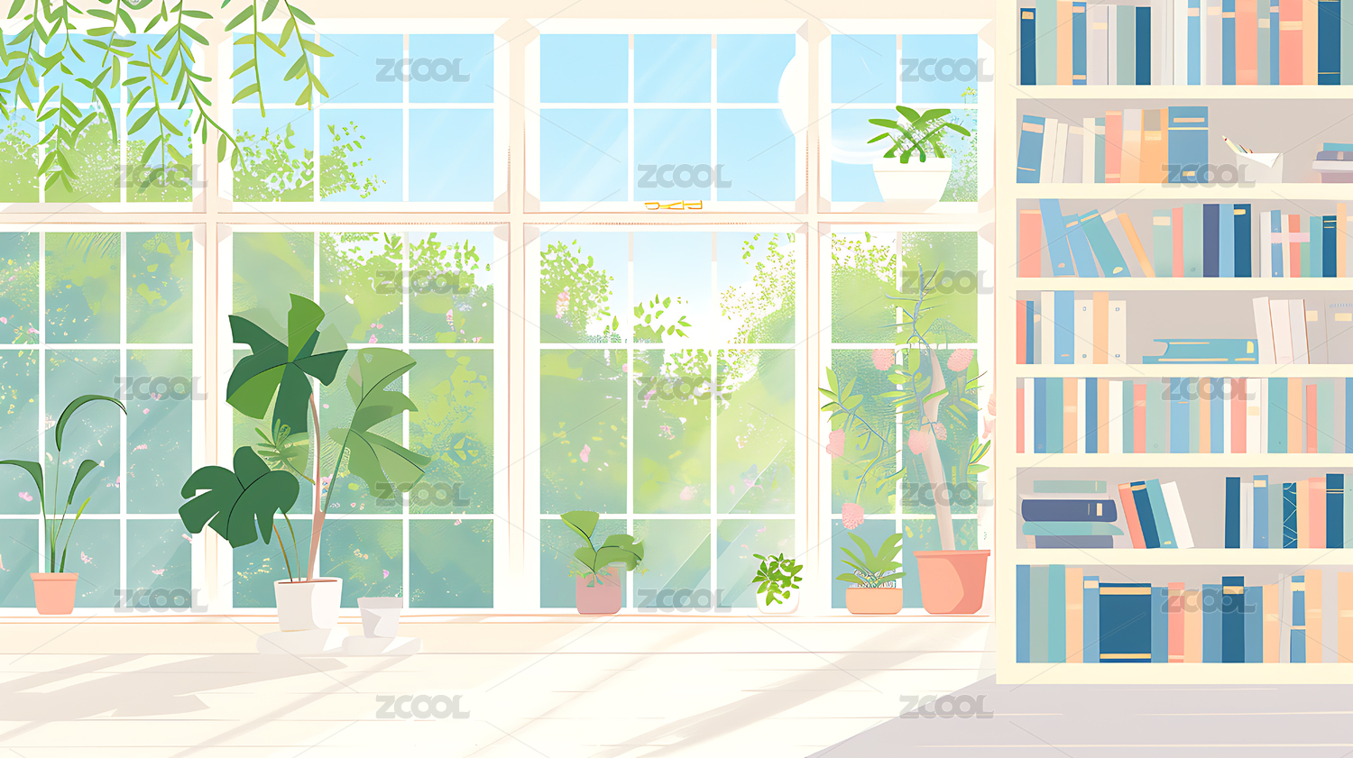 图书馆,场景,插画,小清新,动漫风,插图,背景,书架,看书,世界