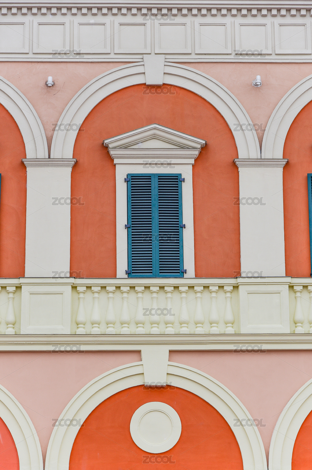 古老房屋上的窗户,古罗马红墙建筑和木窗