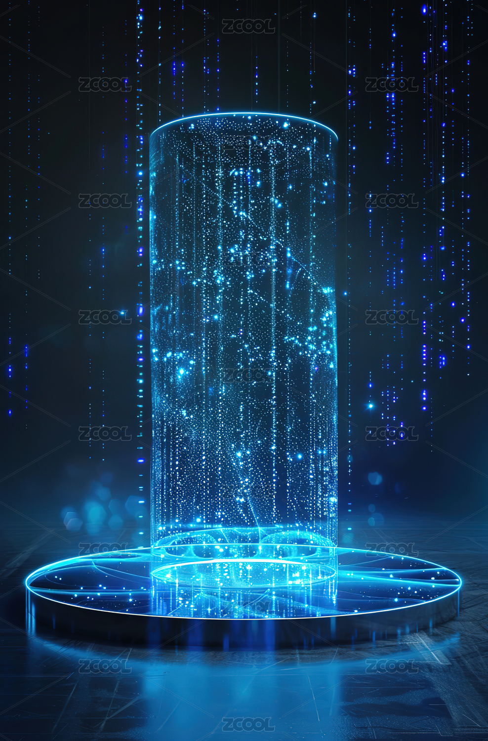 蓝色粒子下落瀑布科技风展台