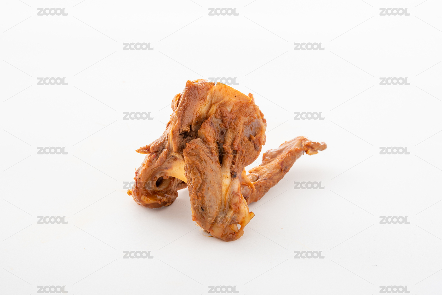 放在白底上的麻辣鲜香的美味酱卤鸭锁骨