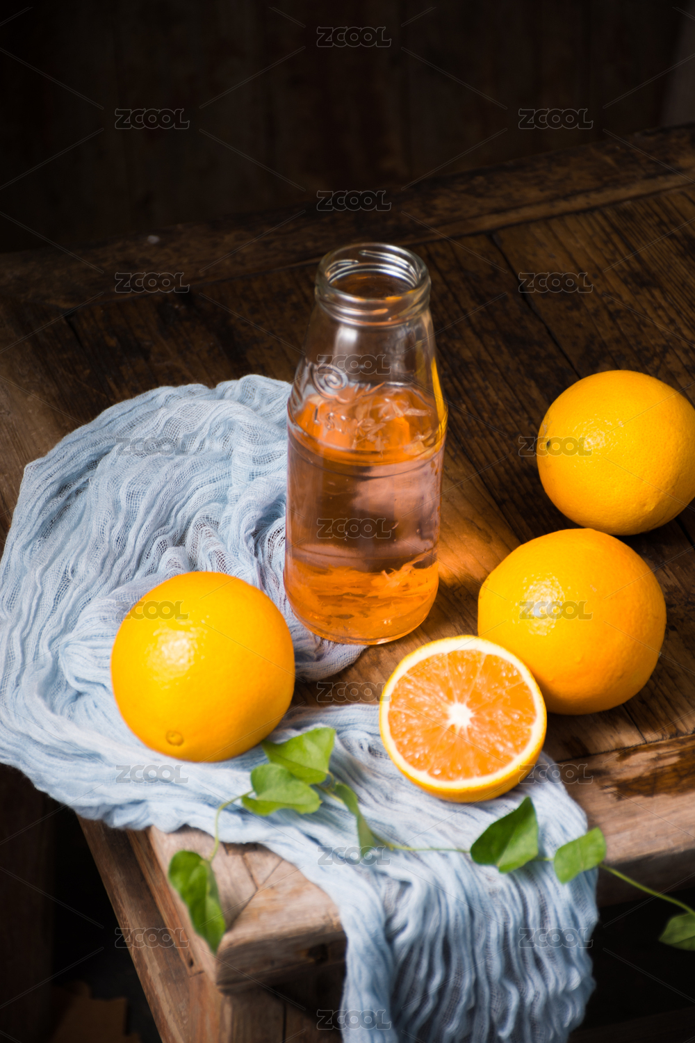 旧木桌,果冻橙汁,橙汁,乡村风格,橙子,美食,饮品,健康饮品,新鲜的,鲜果