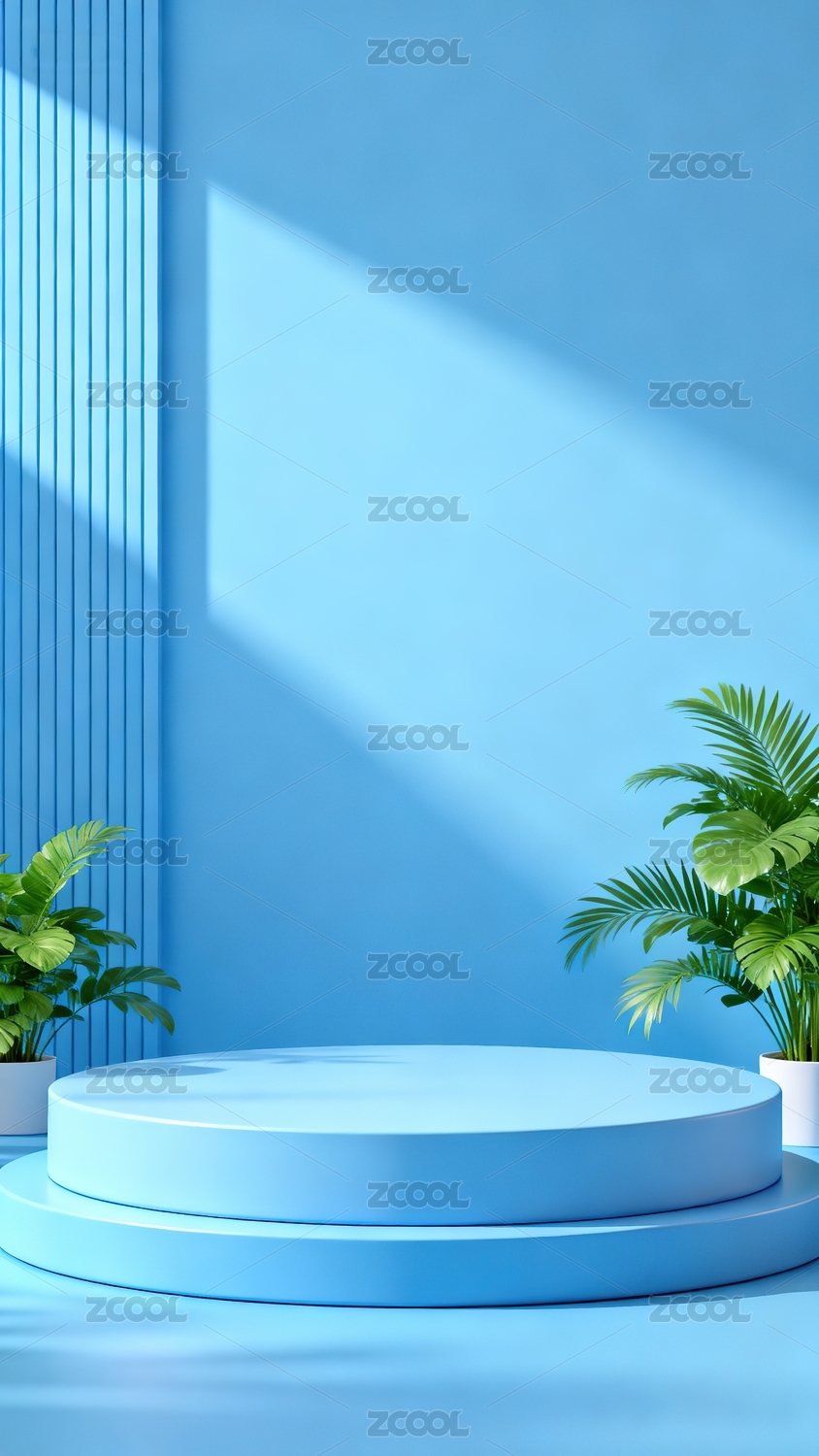 蓝色展台绿植清新场景图